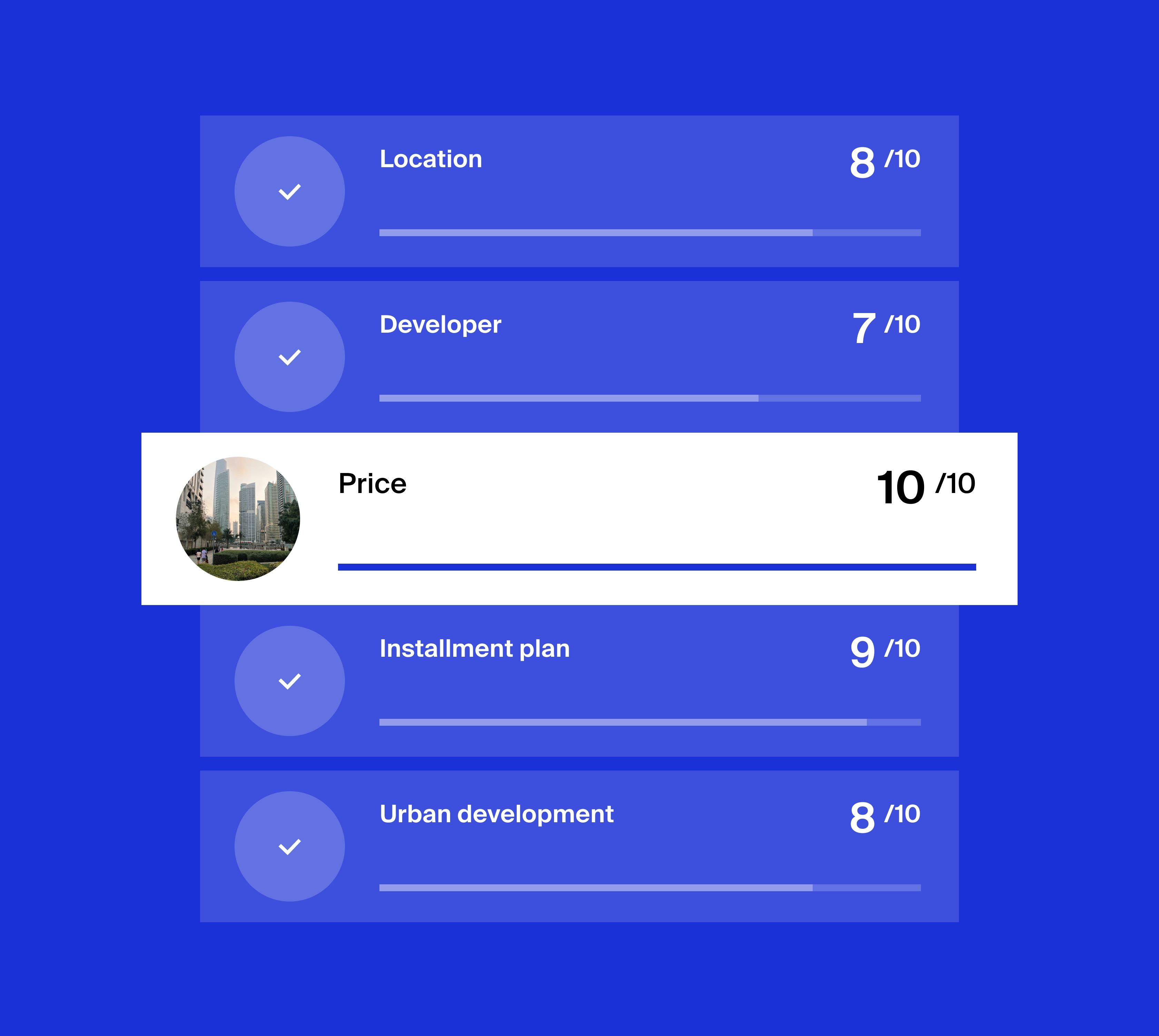 We monitor the market, negotiate with developers, and carefully select options that best match your needs and meet your specific criteria.