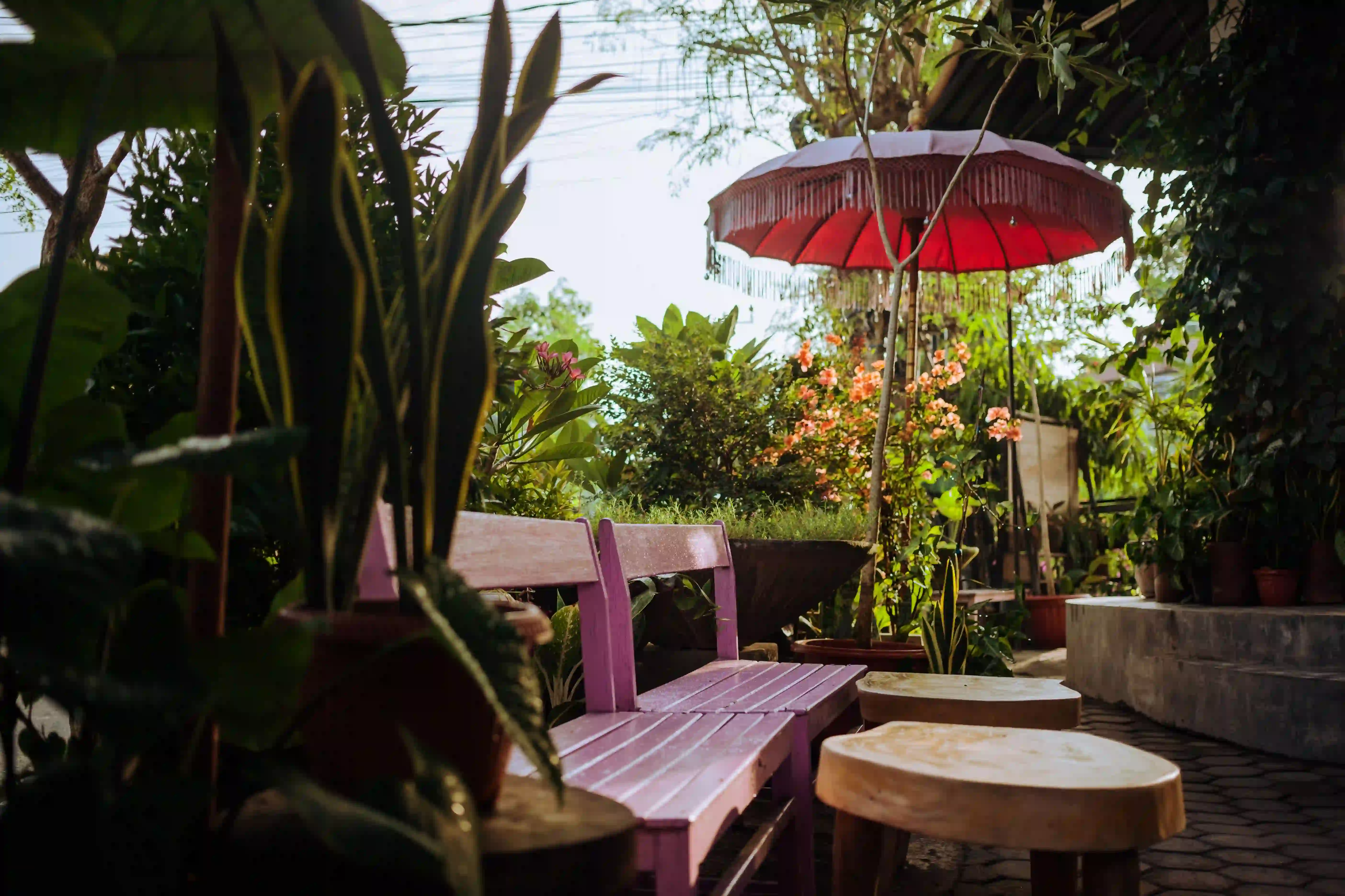Shady patio cafés like this in Canggu create a space where modern expat life meets Bali’s lush greenery, time slows down, and conversations last for hours