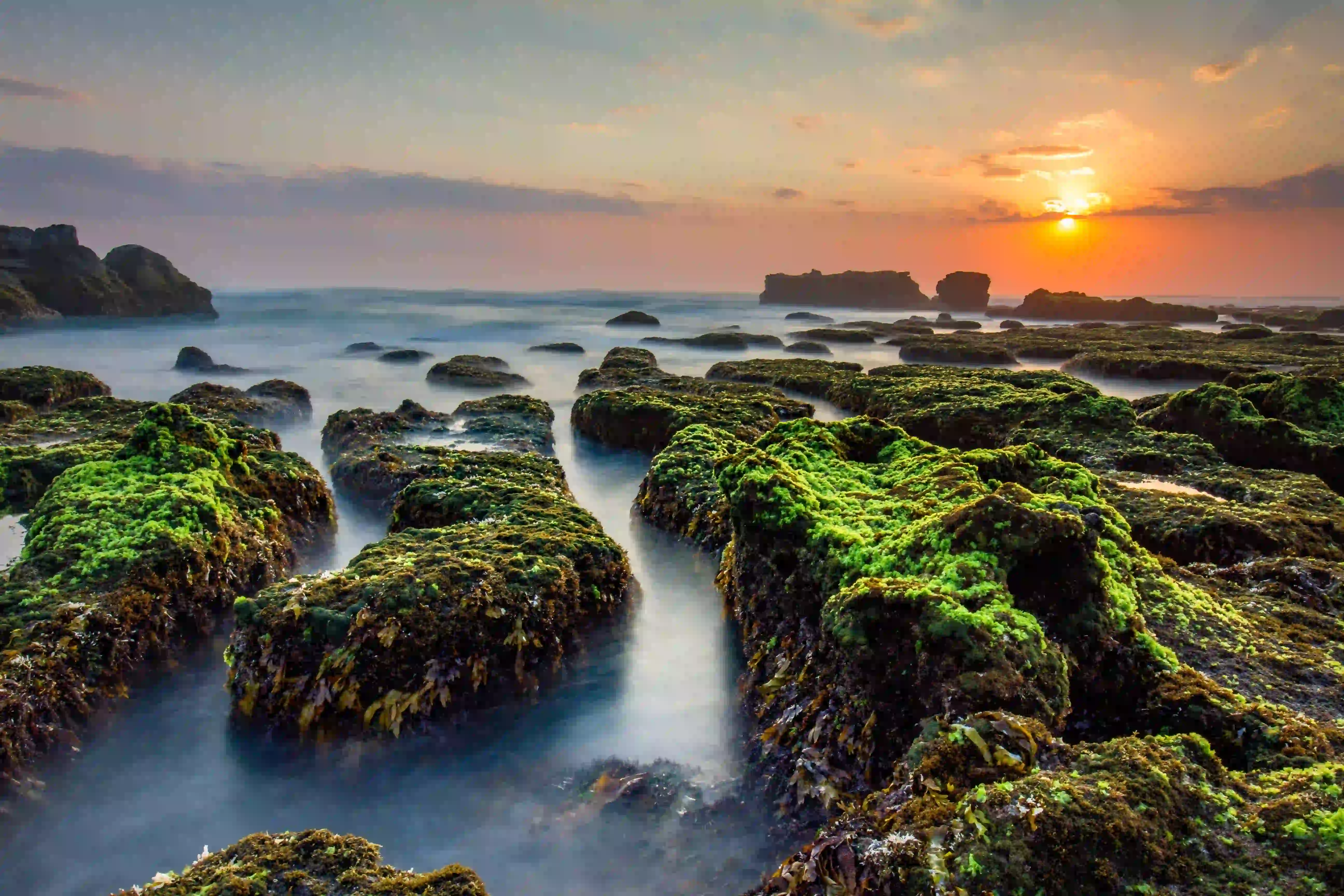 Nyanyi Beach offers black sand, good waves for surfing, and unforgettable sunsets.