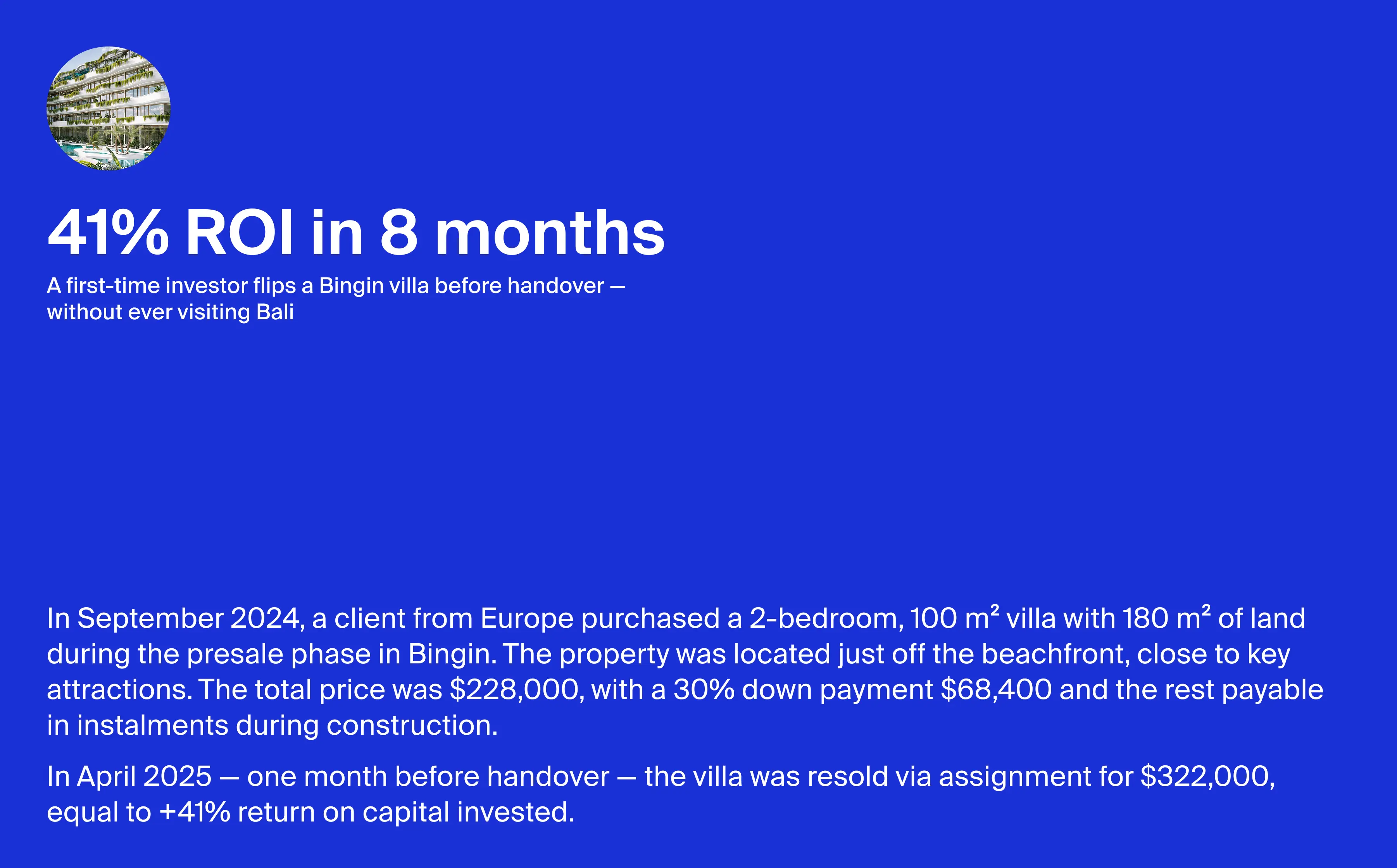 We’re among the first to know about Bali’s hottest presales — and we help clients secure the best units before public launch. Book a consultation to explore high-yield opportunities.
