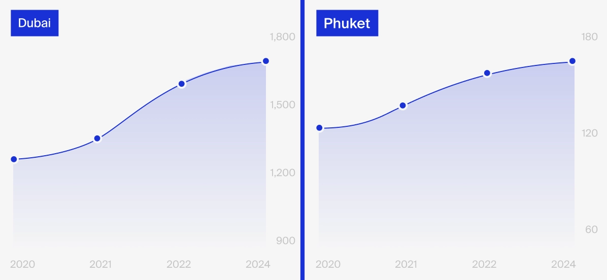 entry point: Dubai from $180,000, Phuket from $90,000;