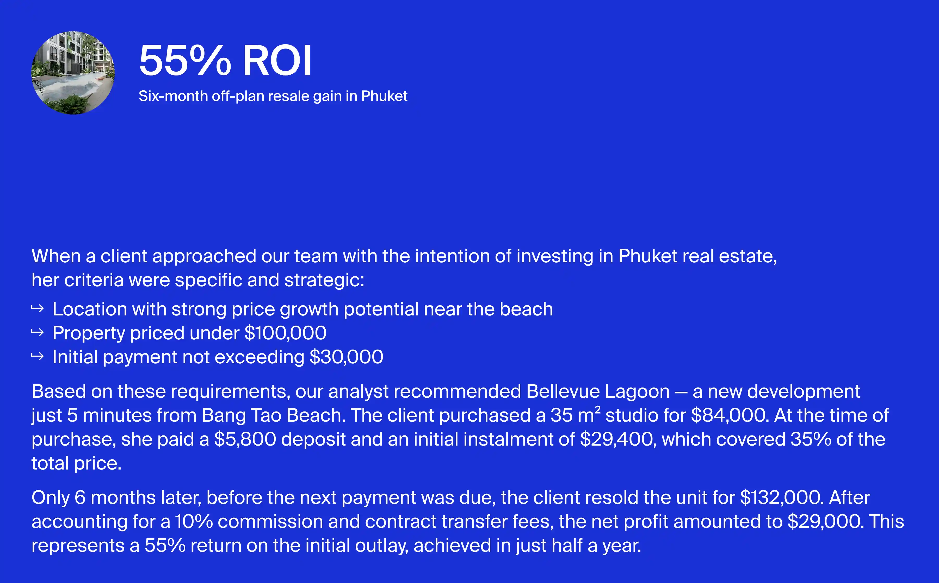 In Phuket, apartments usually start at $100,000 and villas at $400,000. Still, the market includes many “hot” deals at lower prices. These can seem attractive at first, but often come with downsides — such as being located far inland, in older areas with little infrastructure or tourist appeal. As a result, these properties may stay empty longer, be harder to resell, and bring in lower returns.