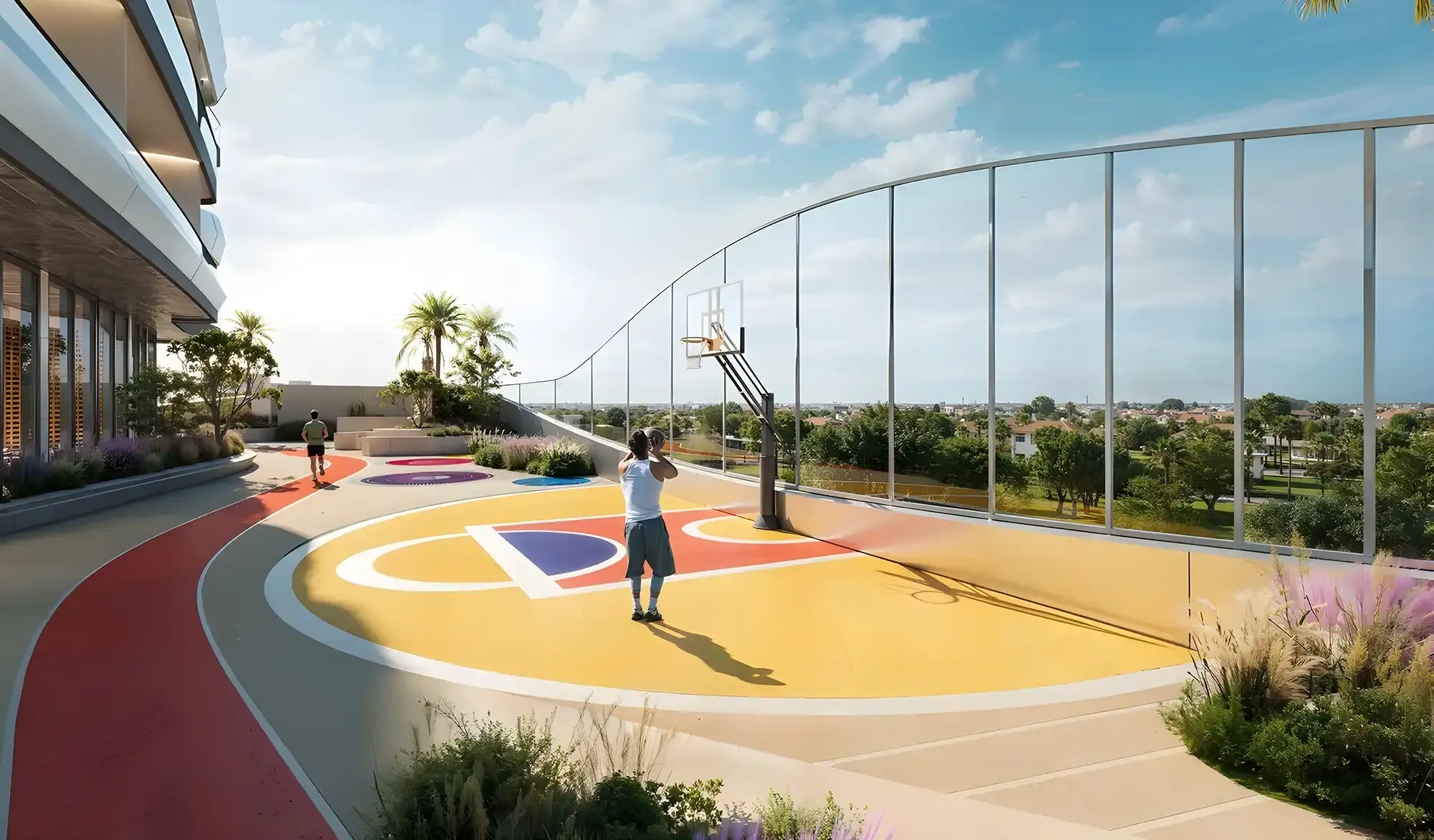 Travel time to Downtown Dubai and Burj Khalifa is around 20 minutes, to Dubai International Airport — 24 minutes. Mall of the Emirates is 12 minutes away, while Dubai Marina and Palm Jumeirah are reachable in 14 minutes. Dubai Sports City, the International Cricket Stadium and ISD Multi-Sports Stadium sit within a 5-minute radius.