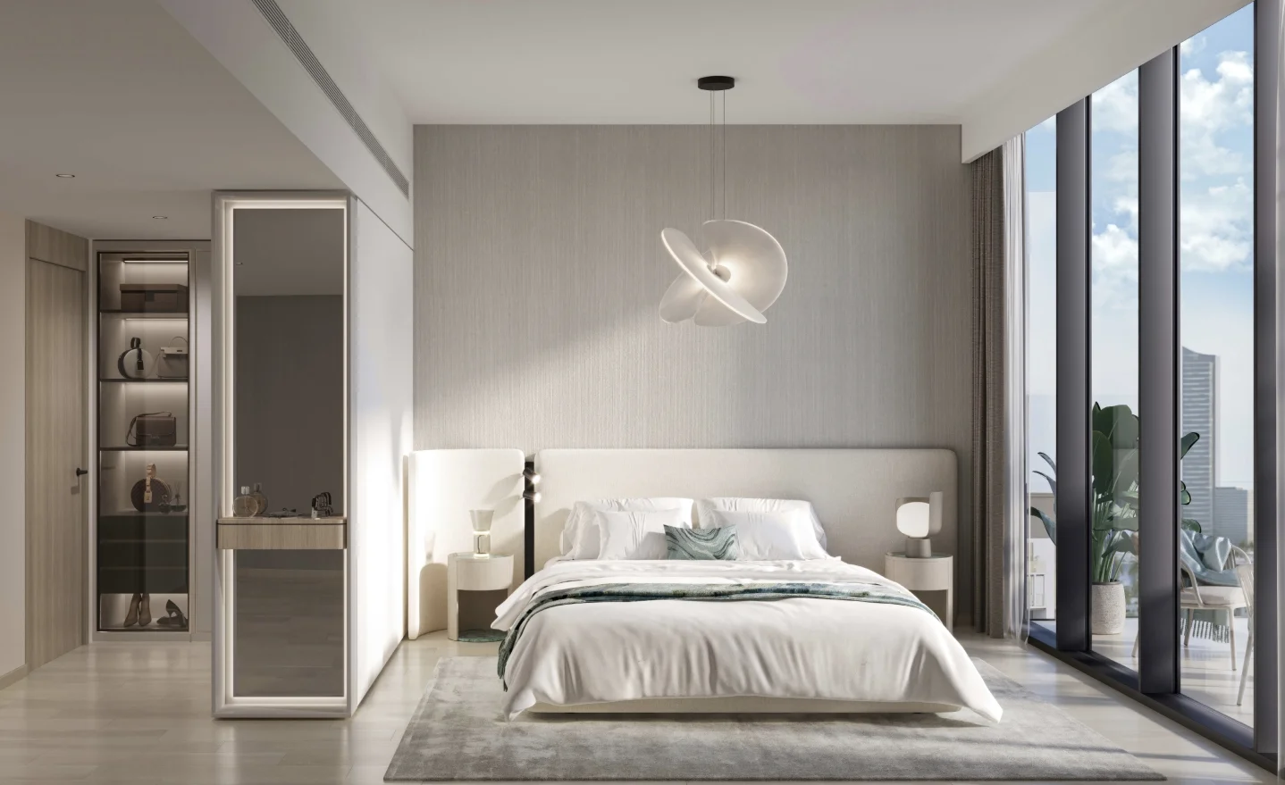 The project offers studios and one-bedroom residences, thoughtfully designed with warm finishes, elegant materials, and modern detailing to create a calming and contemporary living environment