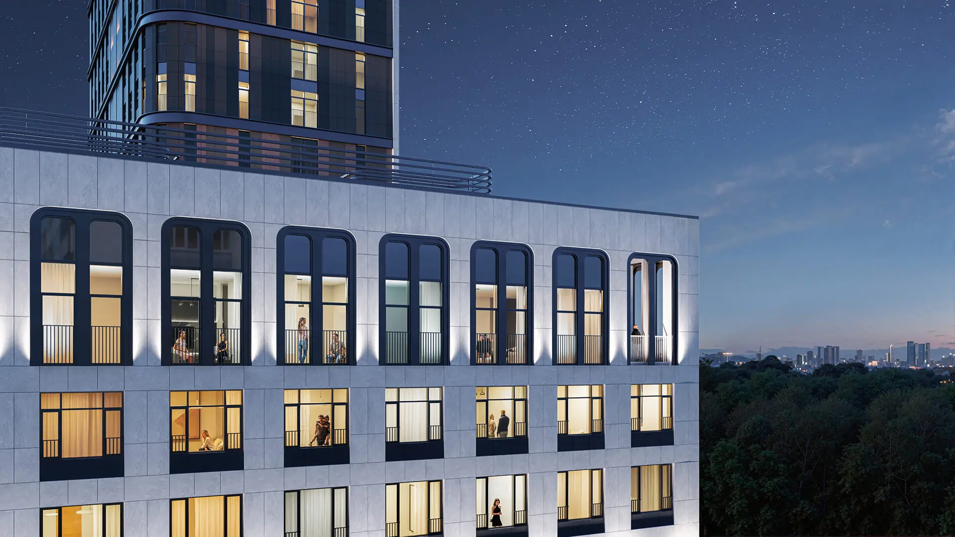Жилой комплекс состоит из двух башен высотой в 5 и 17 этажей, где всего расположено 135 квартир