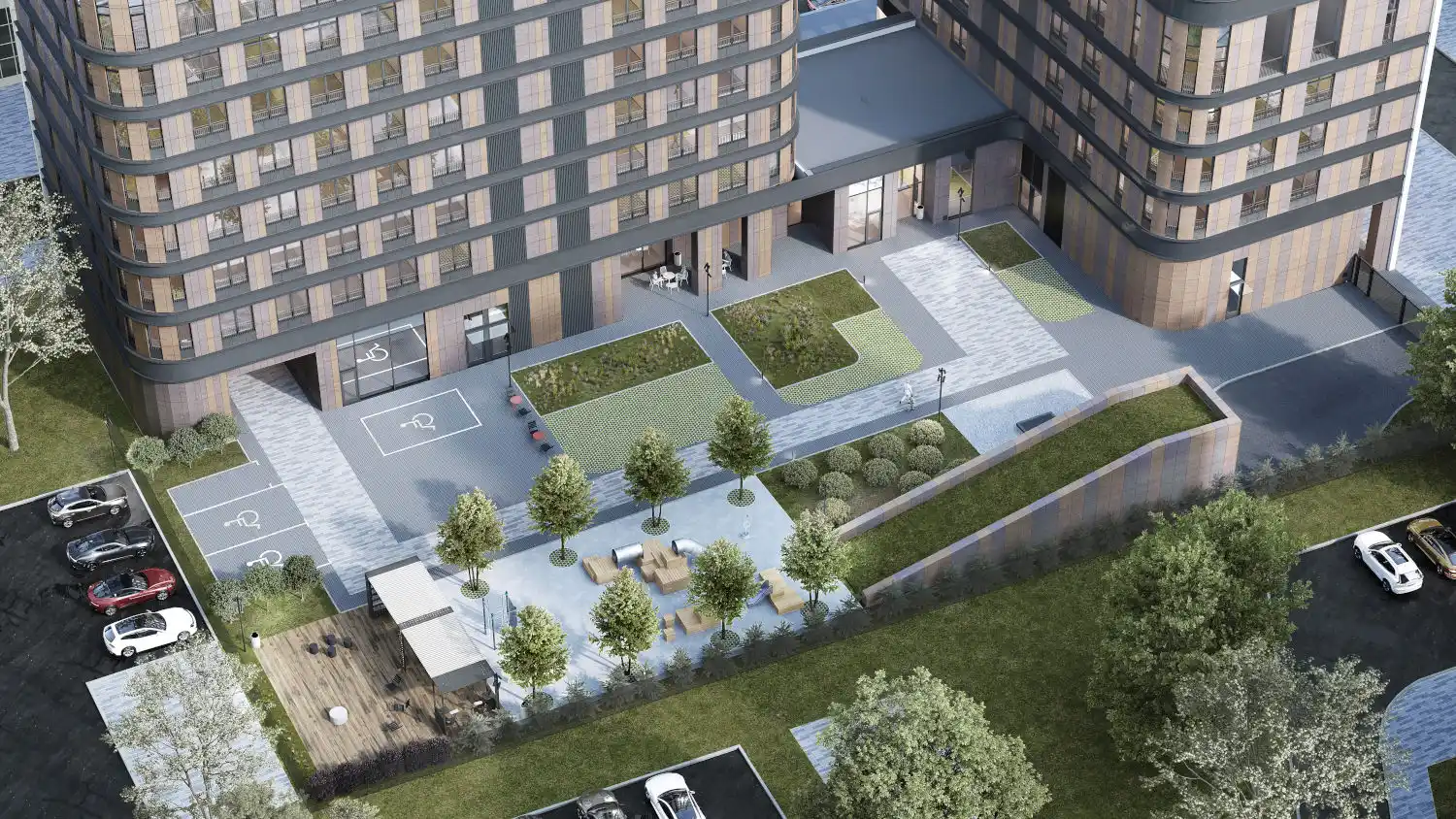 Пентхаусы с собственной террасой находятся на верхних уровнях каждого здания