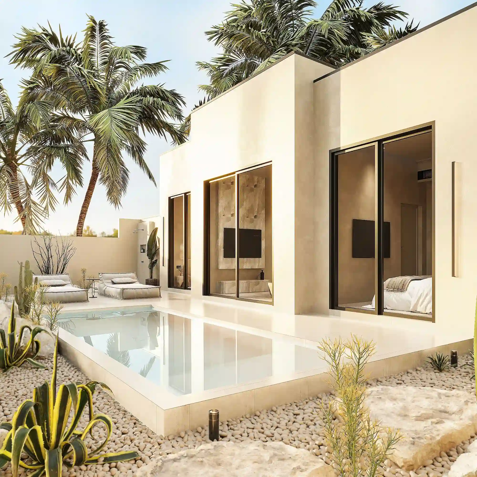 Всего в комплексе представлено 34 квартиры и 2 пентхауса с собственными террасами, дровяным камином и бассейном