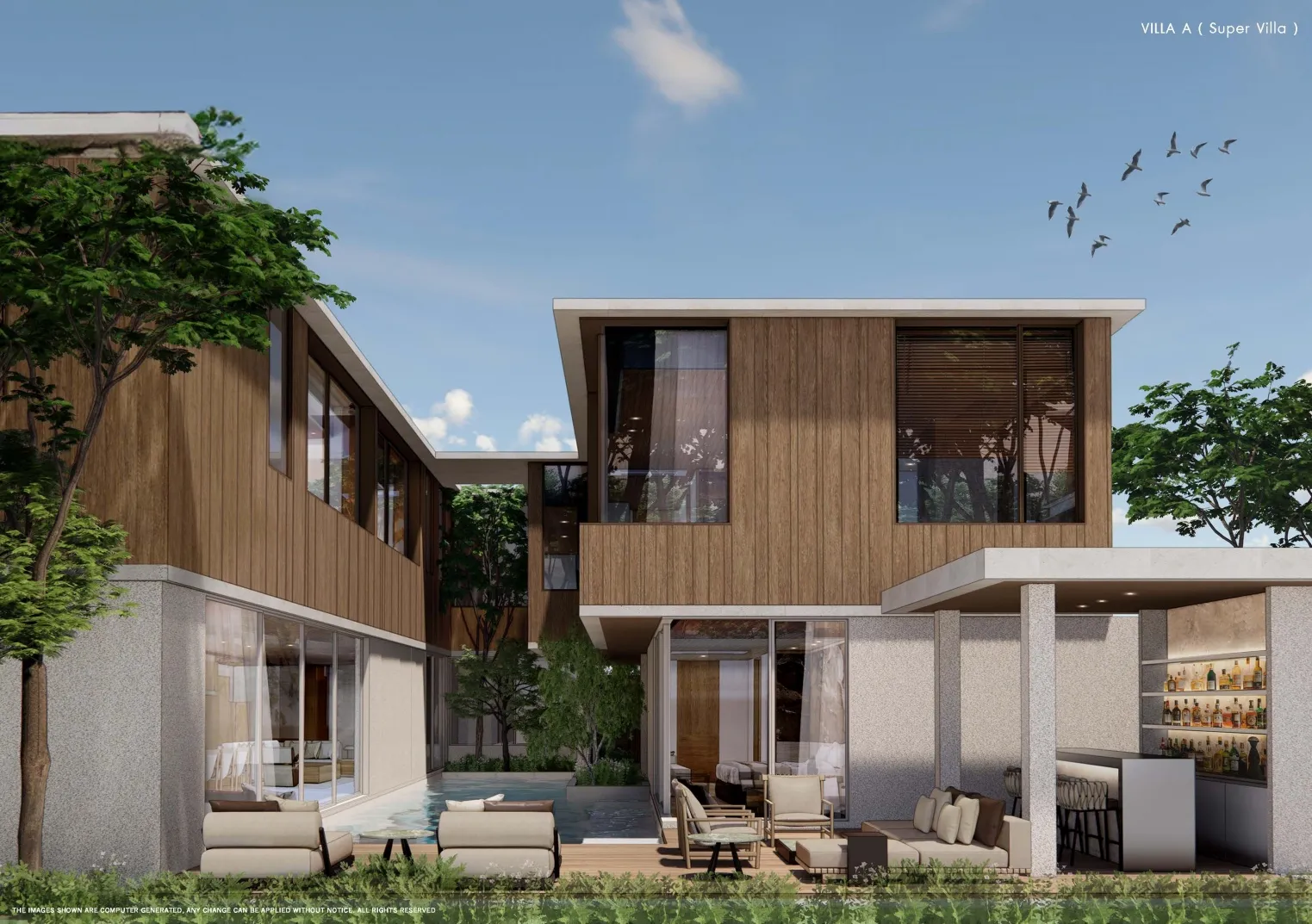 The villas are equipped with features that promote relaxation and social interaction, including spacious living and dining areas, private pools, and open terraces.