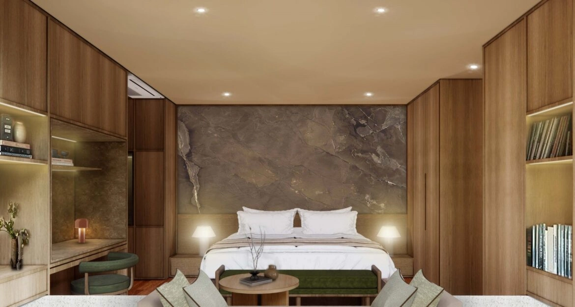 Every villa is thoughtfully designed: natural flooring highlights stability, while contrasting textiles and decorative elements add a dynamic touch.