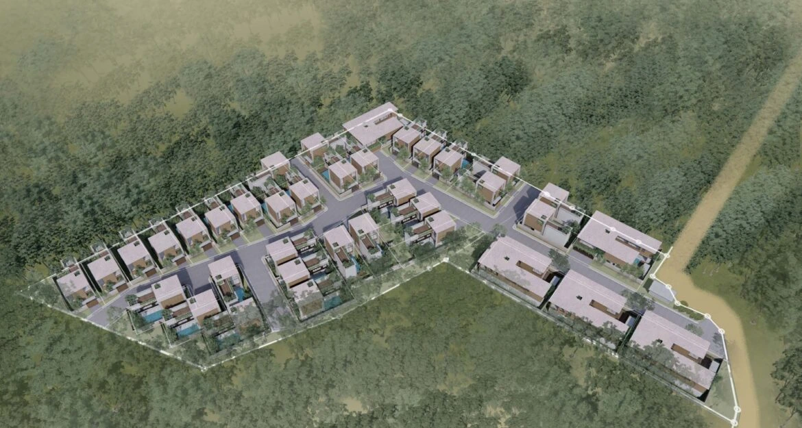 The complex includes 37 villas with living areas ranging from 271 to 897 m² and land plots from 258 to 816 m²