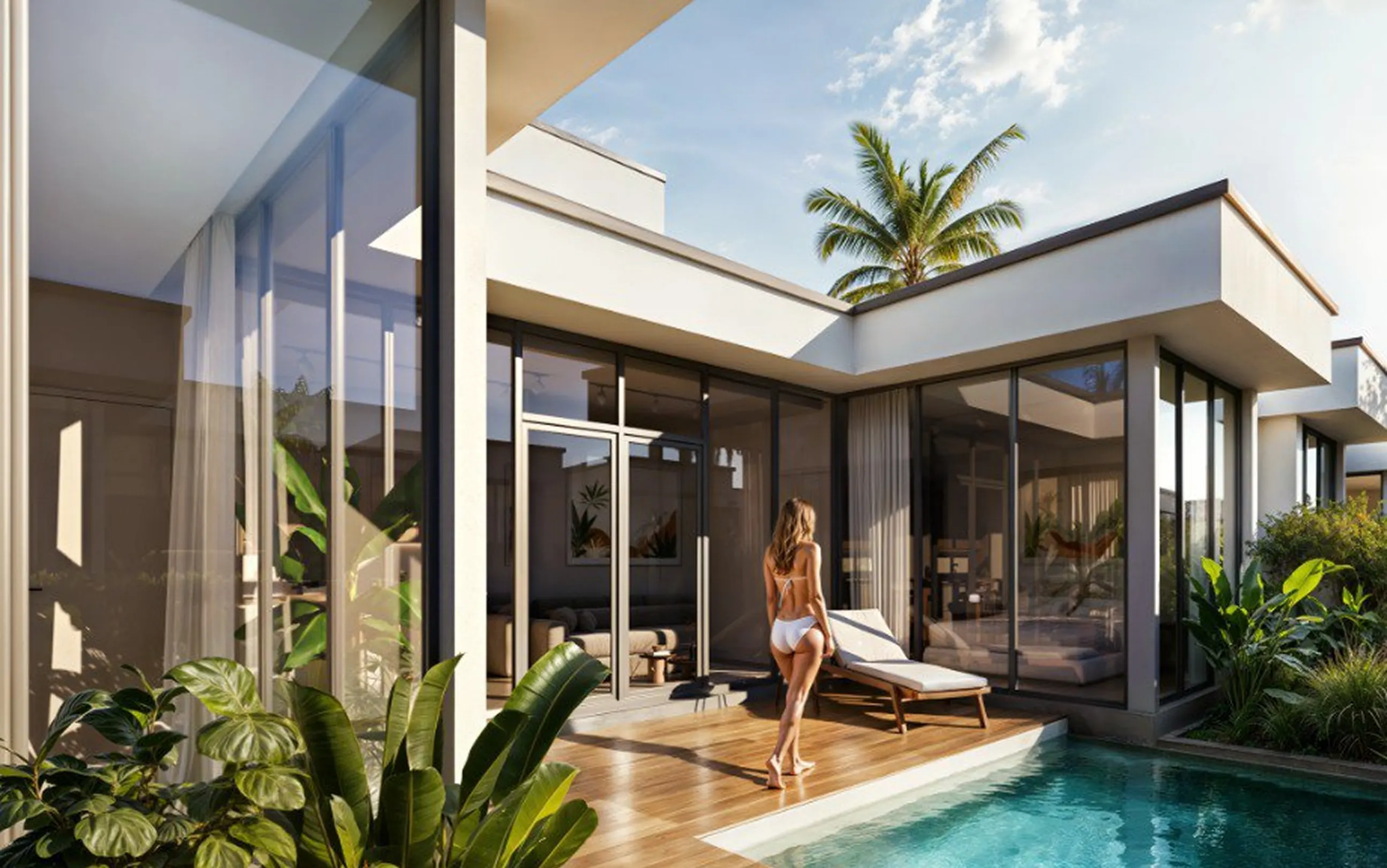 The complex offers 1-, 2-, and 3-bedroom villas, fully furnished and equipped with private pools, jacuzzis, and spacious relaxation areas