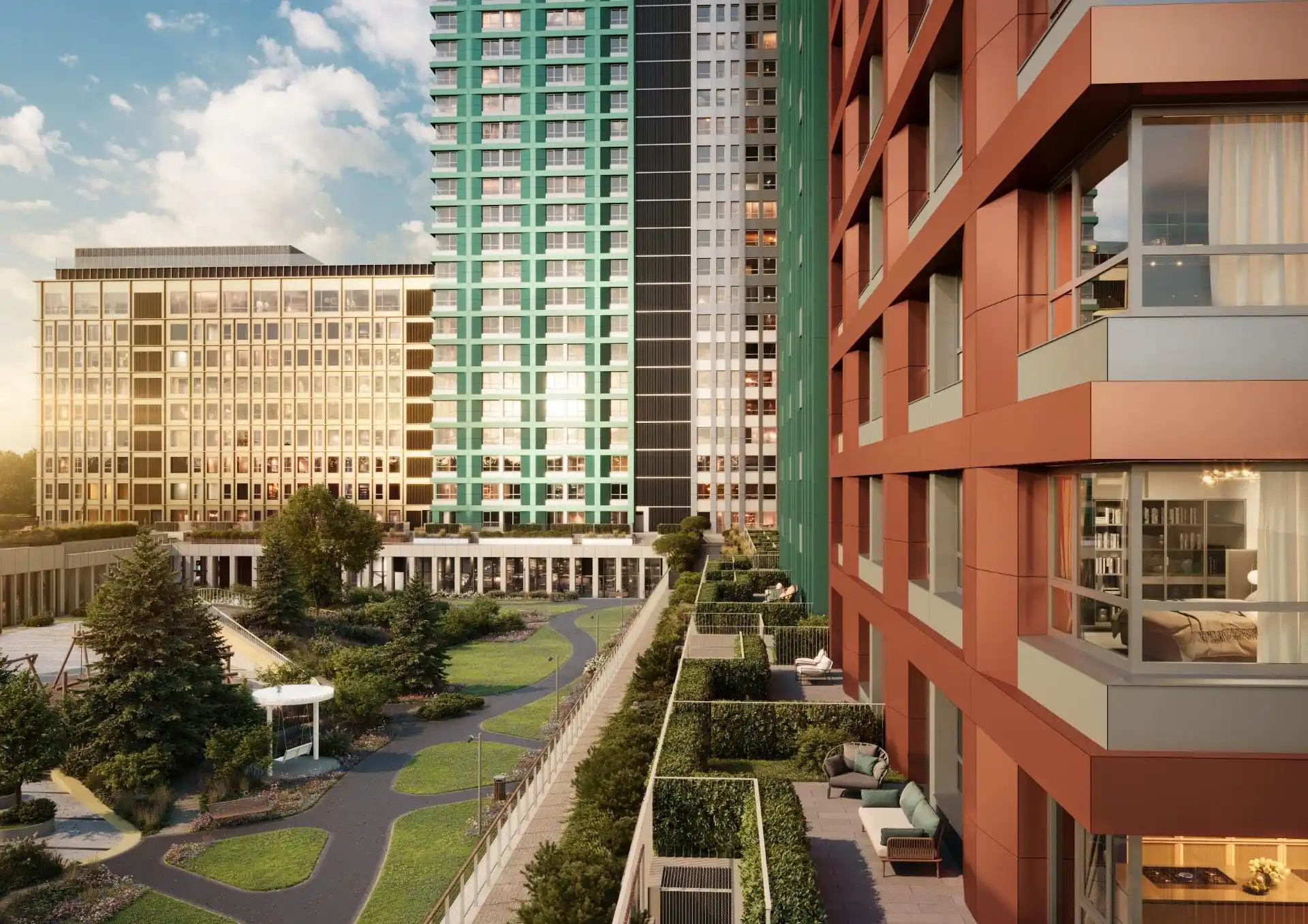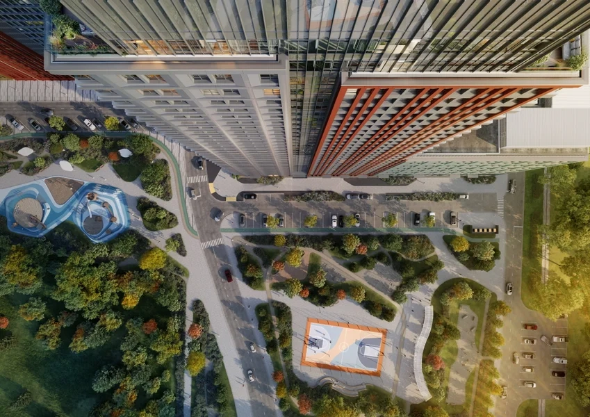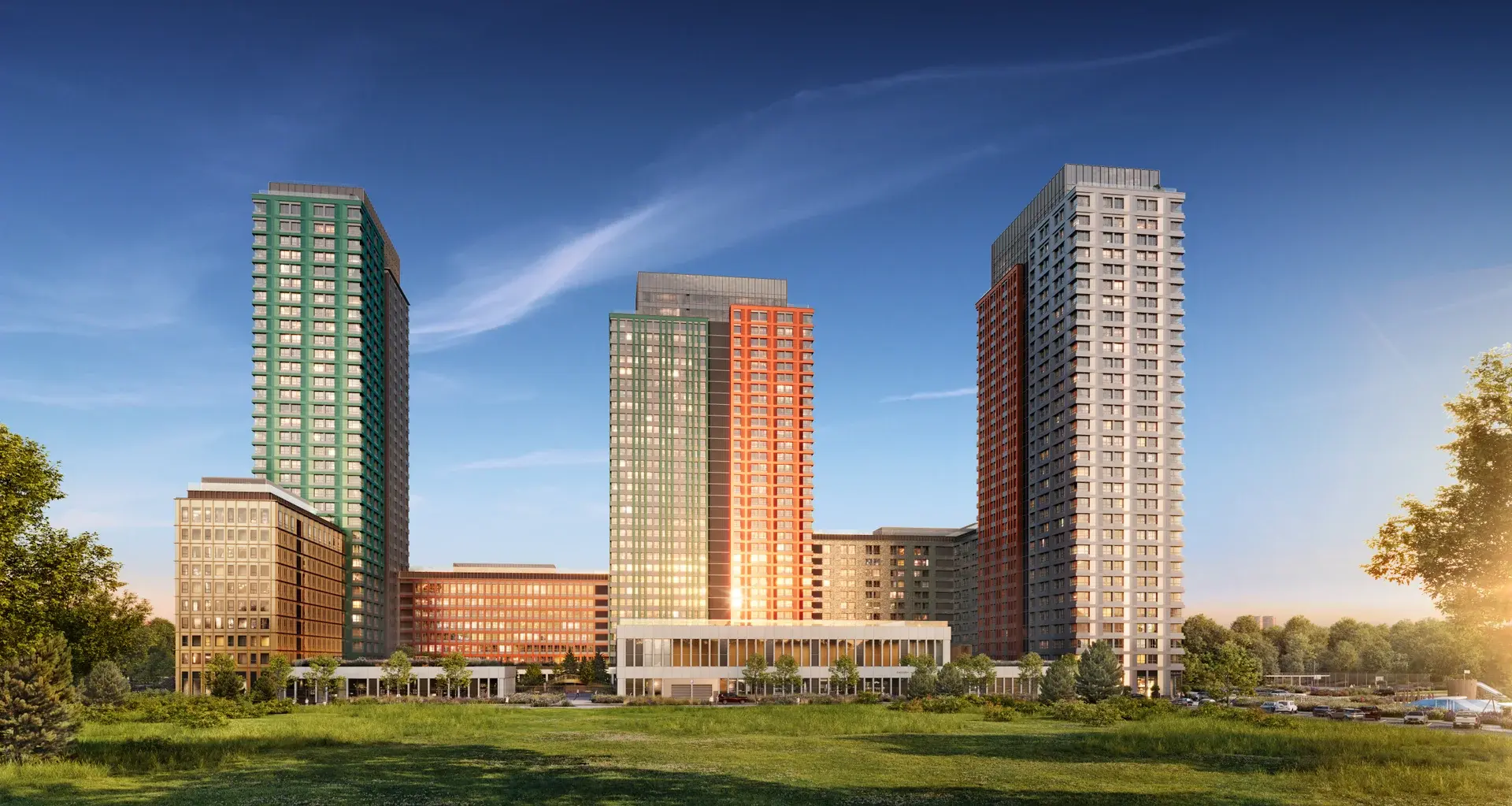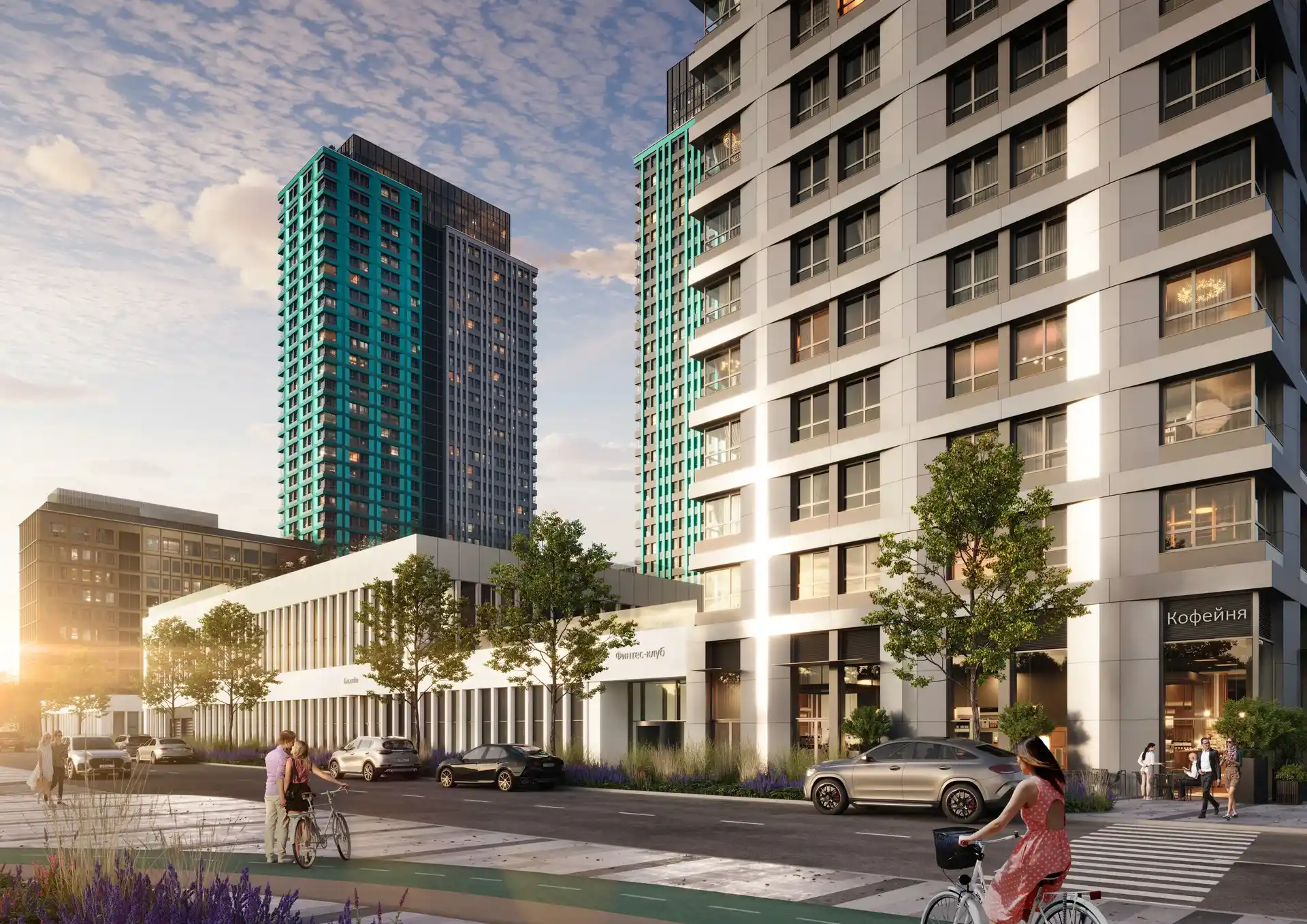 Жилой комплекс состоит из трех кварталов этажностью от 8 до 35 этажей