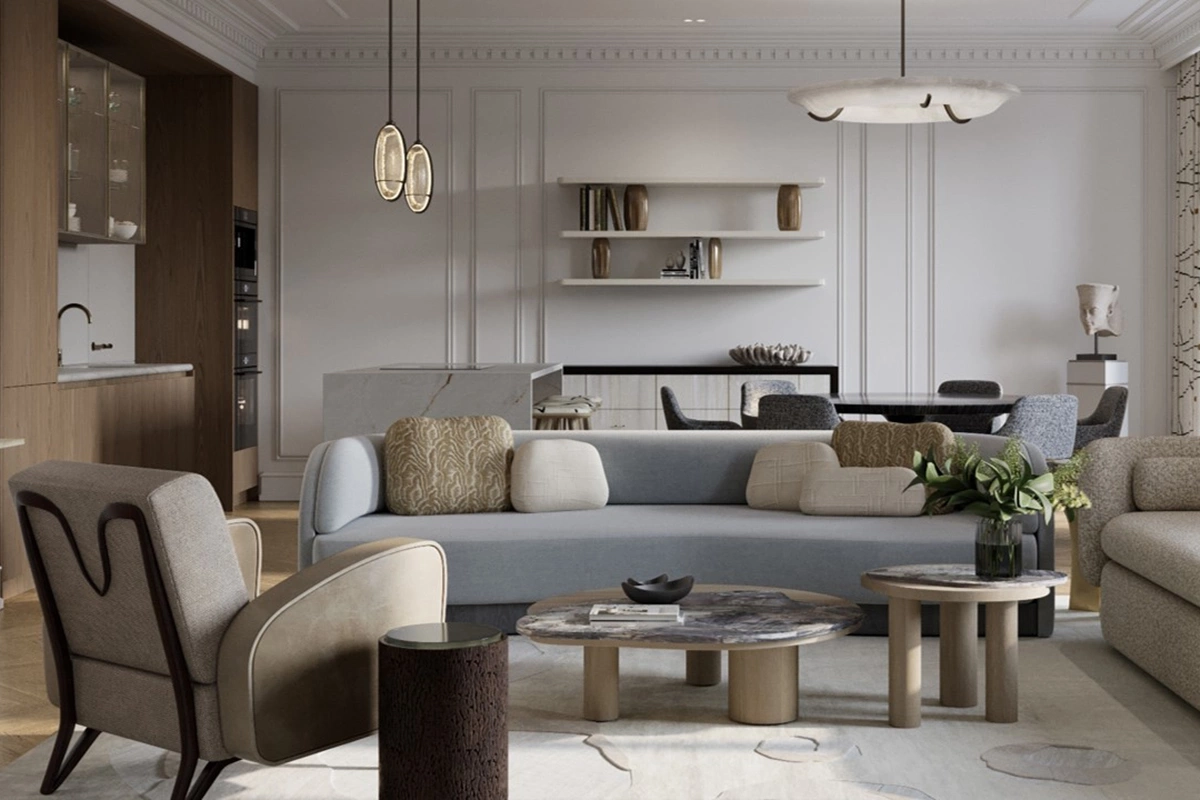 Квартиру можно приобрести с готовой отделкой от бюро Олега Клодта. На выбор покупателей представлено 2 вида дизайнерского оформления – в современном и неоклассическом стиле, каждый из них доступен в светлых или темных оттенках. Пентхаусы передаются в черновой отделке.