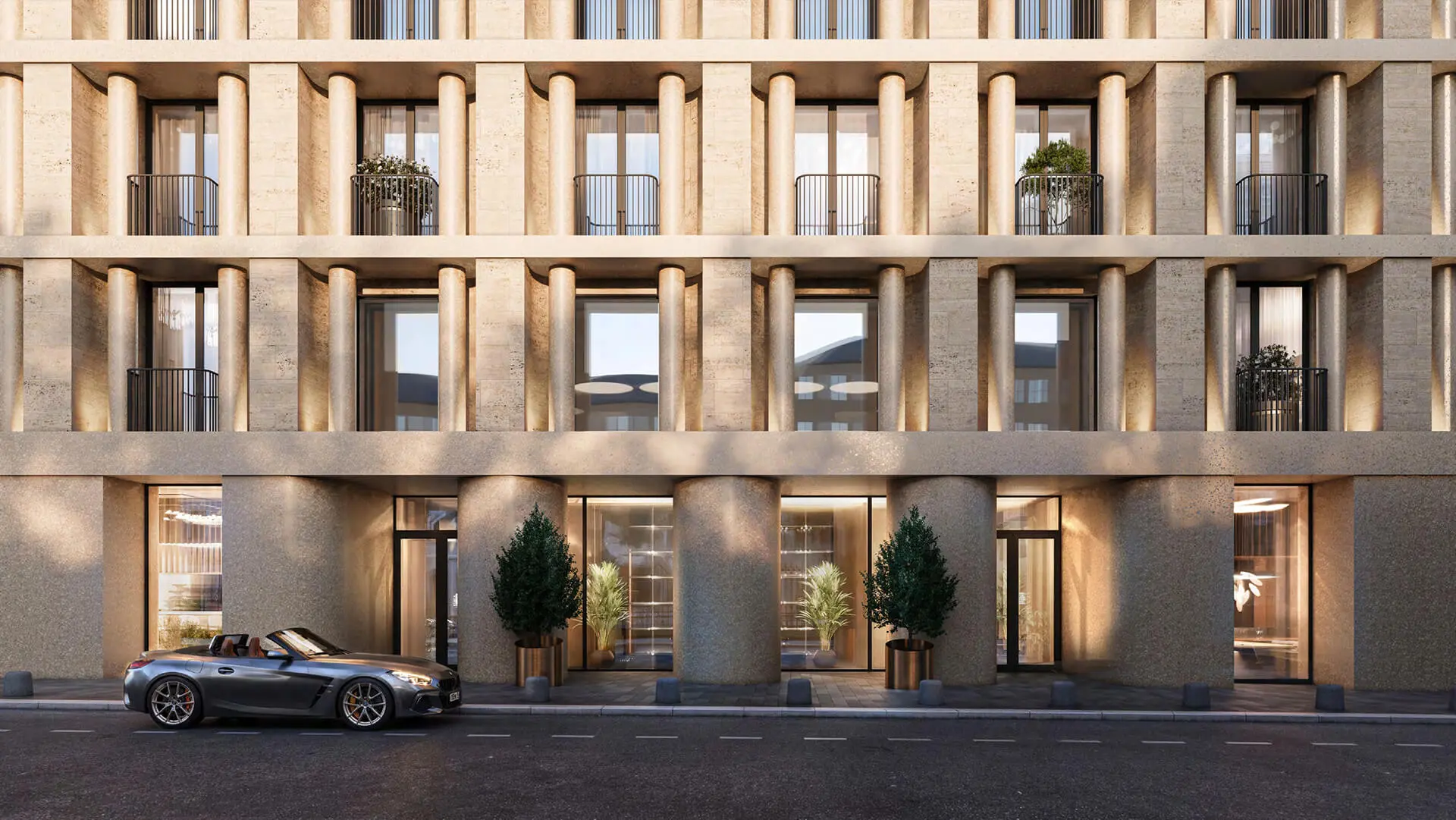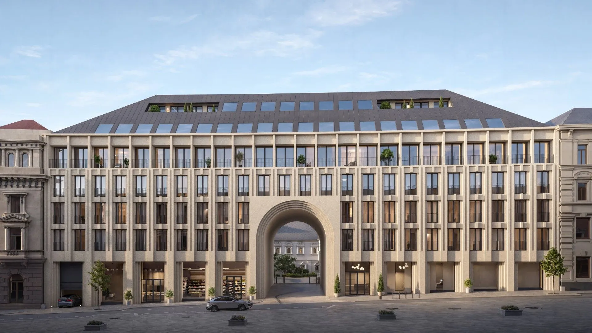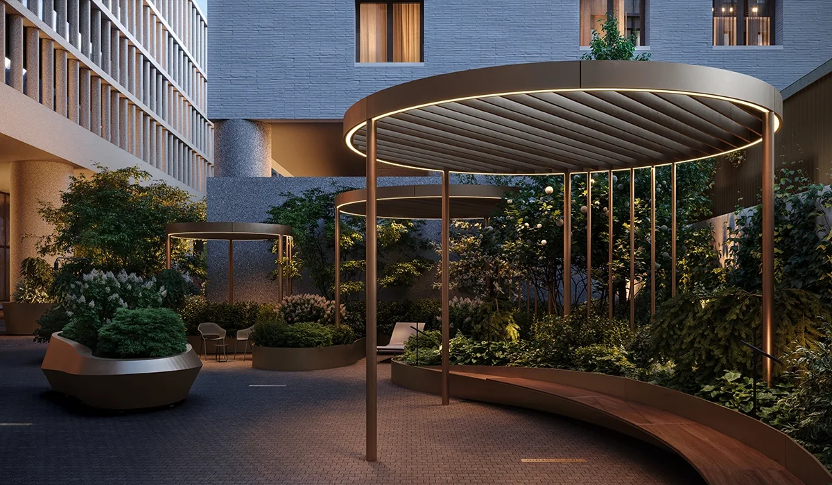 На территории проекта разместится более 1 4000 м² коммерческих помещений: рестораны, бутики, кафе, спа-салон, винотека, продуктовые магазины.