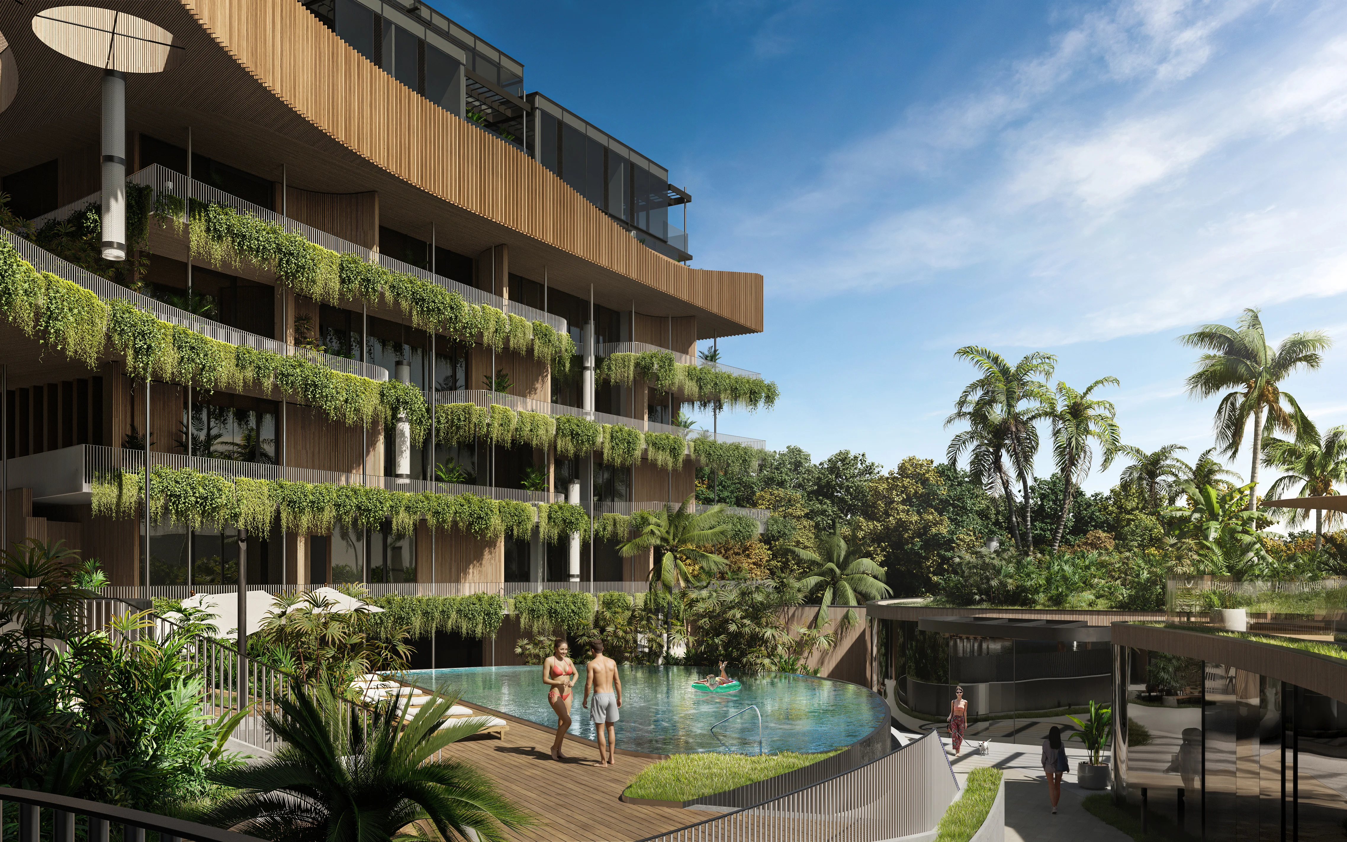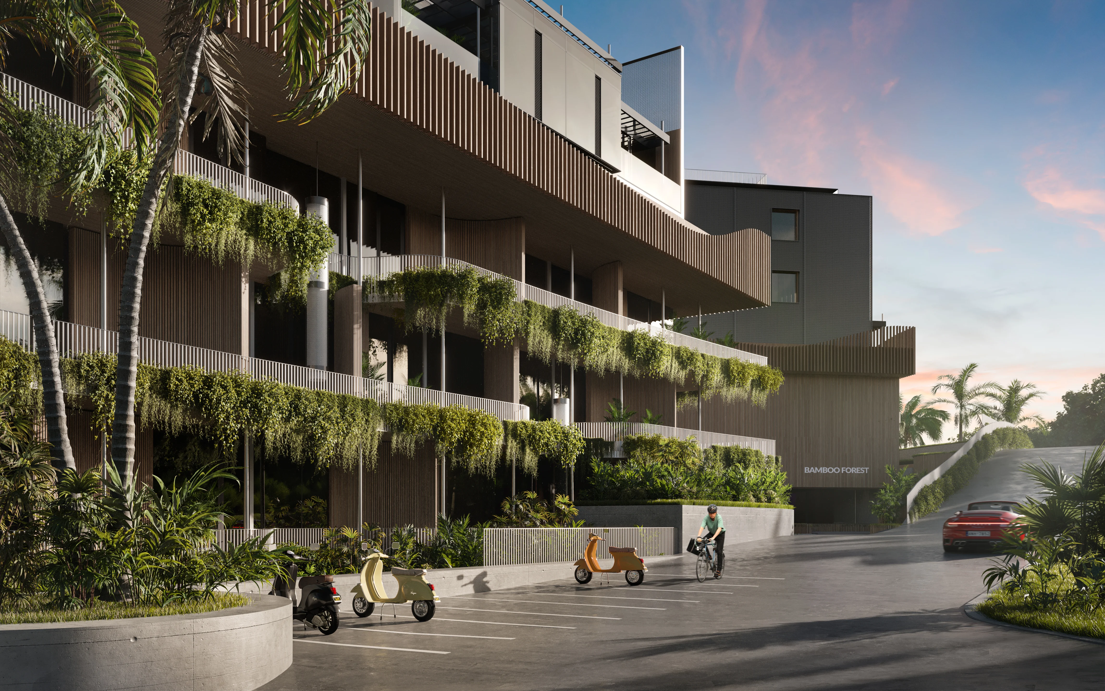 All interiors are designed by Zrobim Architects. To meet diverse lifestyle preferences, each building features its own distinct style: from minimalist to vibrant and ethnic. Hanging gardens and a bamboo forest create a unique aesthetic and atmosphere of harmony.