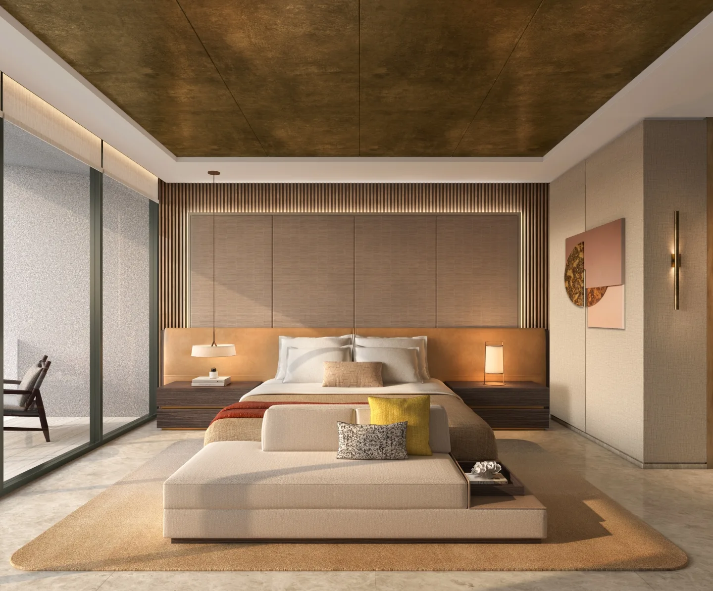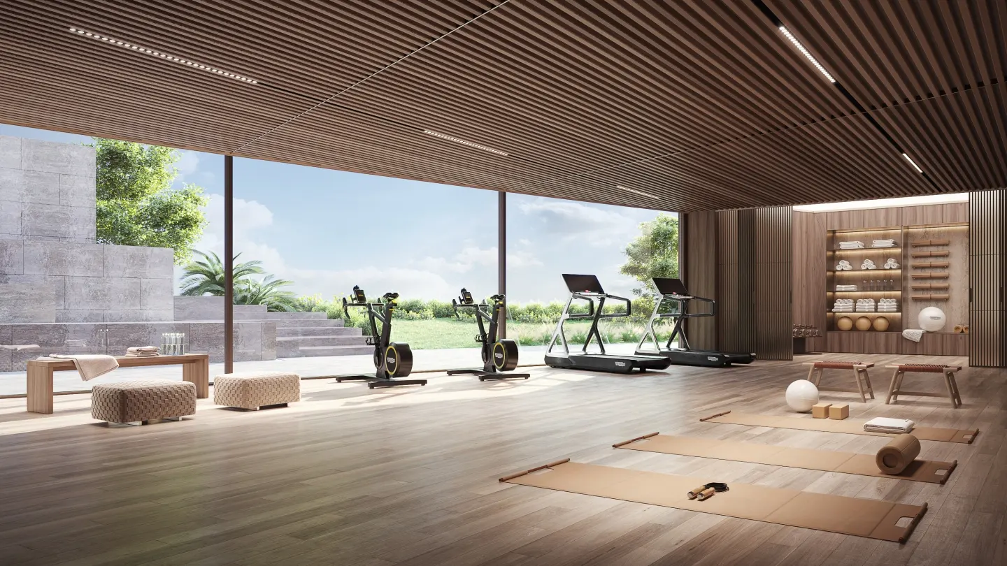 Six villa types are available, most including a fully equipped gym, staff room, private garage and private swimming pool