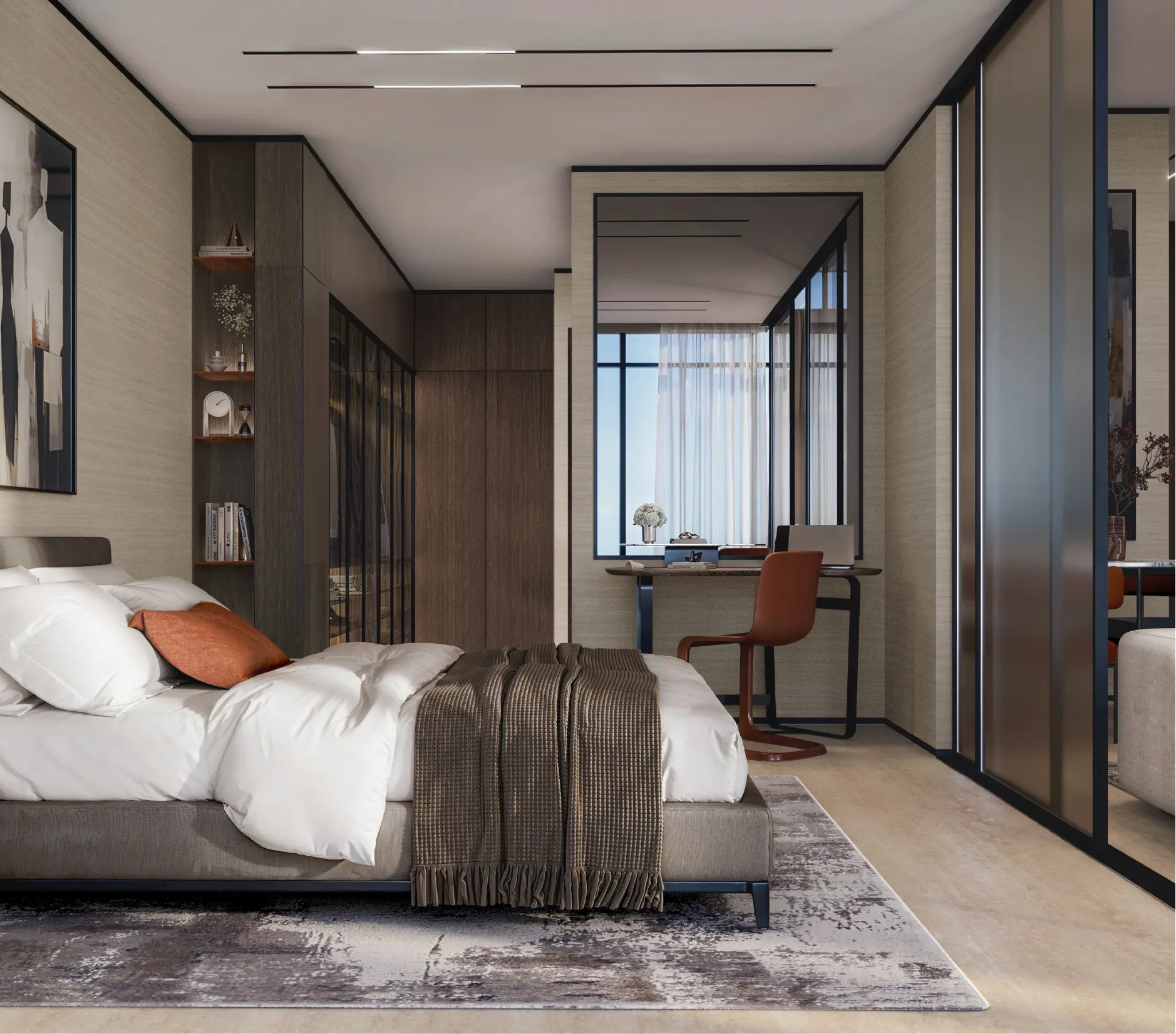 Interiors are designed in Italian style with natural elements and warm tones