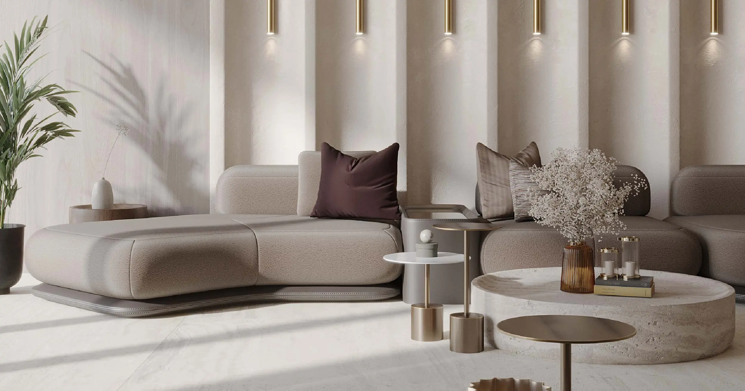 The district combines a calm atmosphere with developed amenities. Driving times: Palm Jumeirah — 16 minutes, Burj Khalifa — 17 minutes, Dubai Marina — 20 minutes.