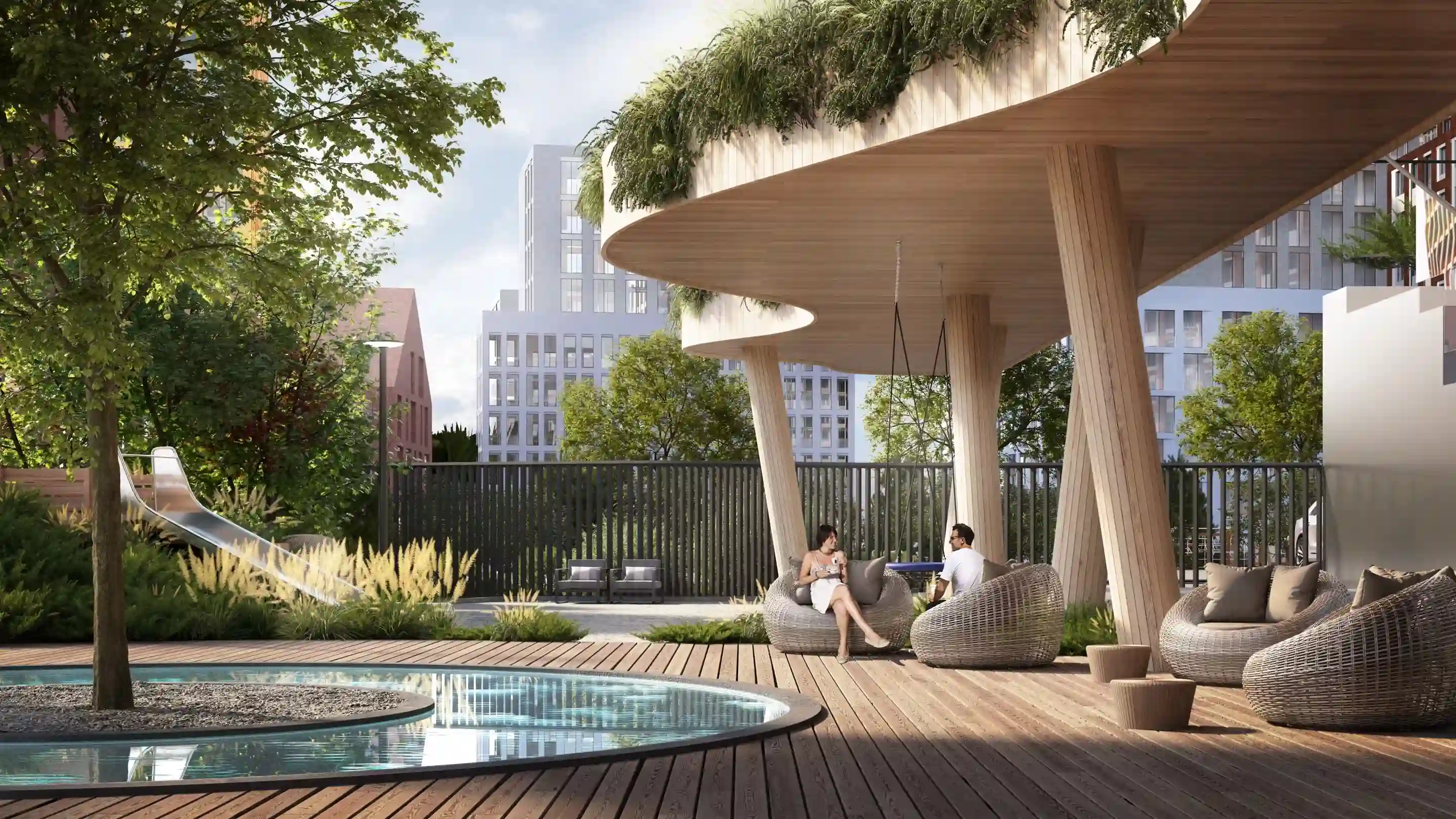 Центральный парк комплекса имеет выход на благоустроенную городскую набережную протяженностью девять километров, соединяющую район с «Москва-Сити» и Строгинским мостом.