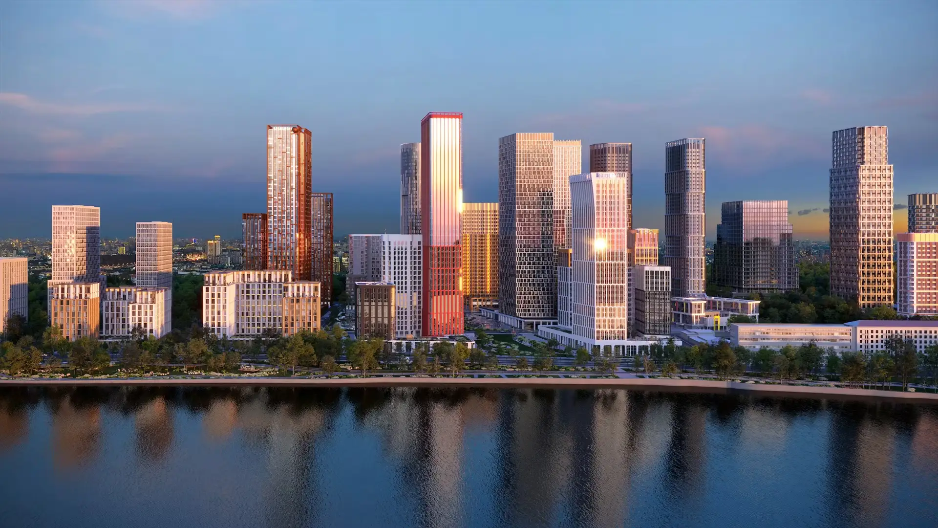 Состоит из домов высотой от 8 до 44 этажей с панорамными видами на Москва-реку, набережную и Филевский парк