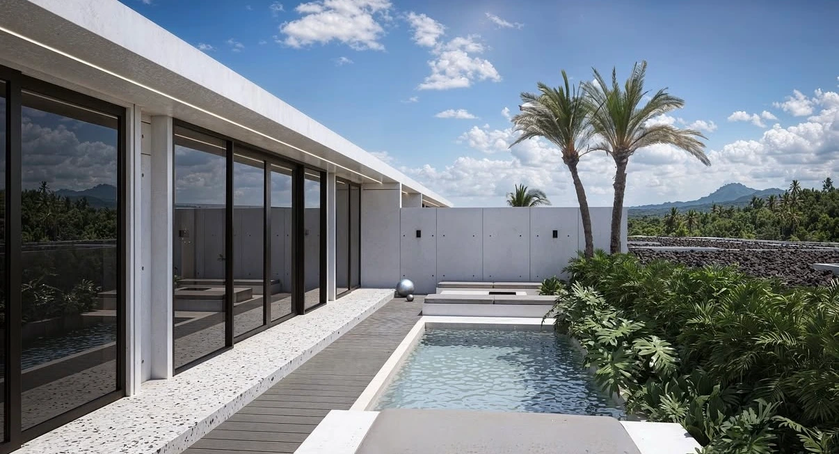 A unique complex of 16 private villas with pools: 12 villas have 2 bedrooms each, 3 villas offer 3 bedrooms, and one residence features 4 bedrooms