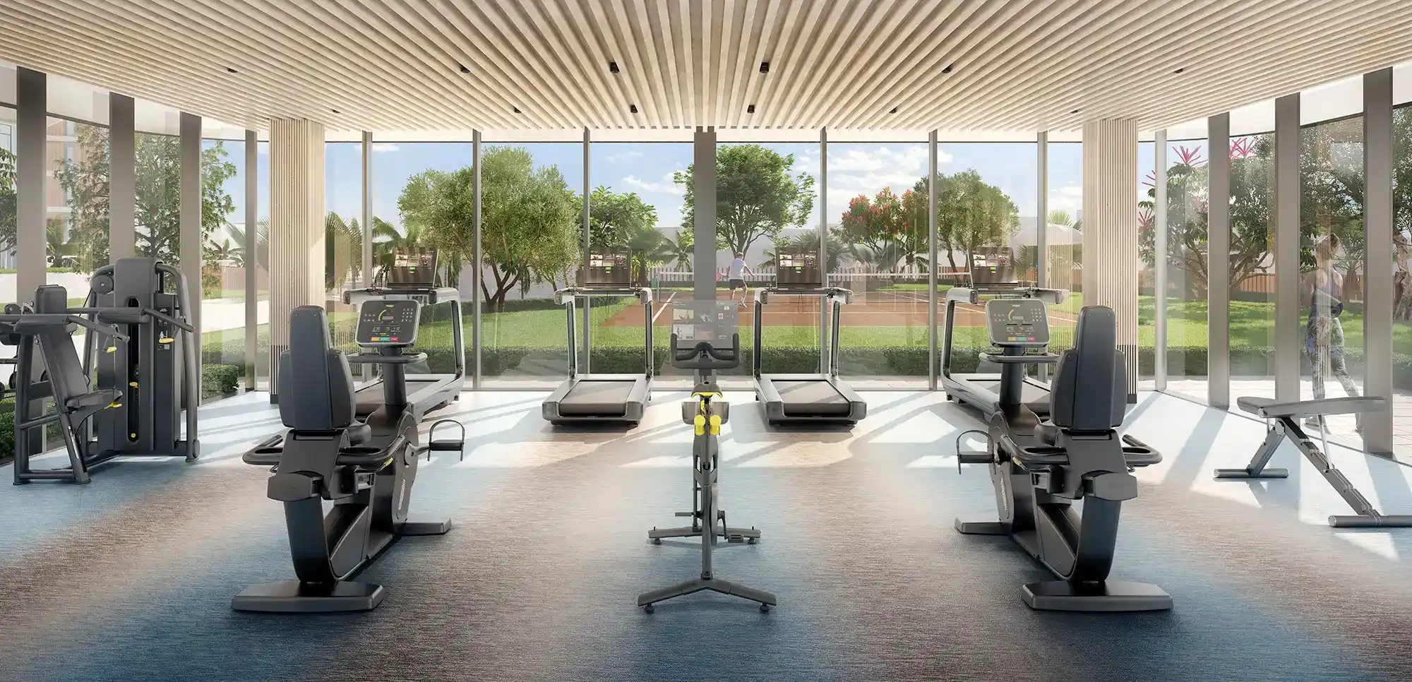 Residences feature balconies, laundry rooms, built-in wardrobes and walk-in closets in bedrooms, foyers, and kitchens with integrated appliances