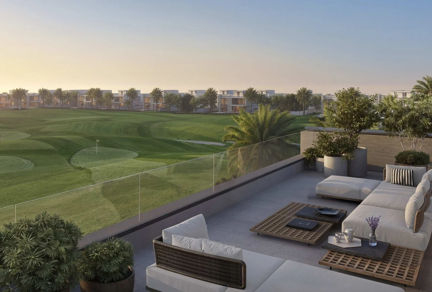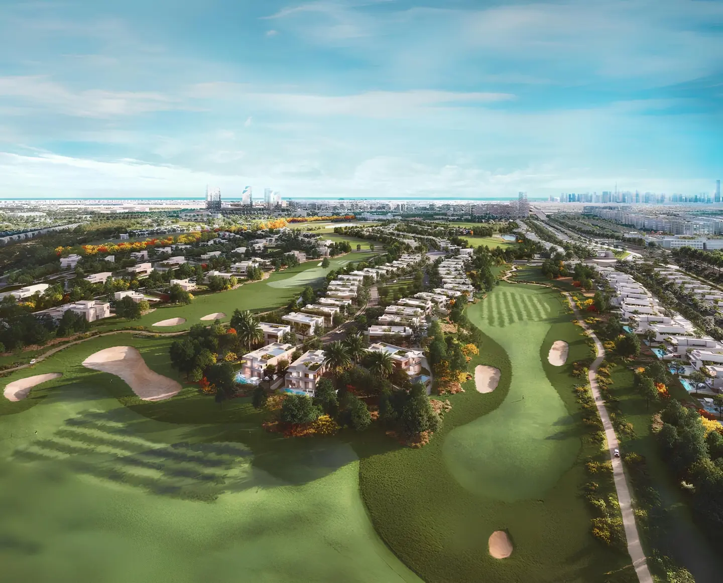 The area features villas and townhouses surrounded by greenery and world-class golf courses, ideal for families and sports enthusiasts. Nearby amenities include Country Club, Mandarin Oriental Hotel, an international school, and a hospital. Convenient access is ensured by proximity to metro stations and the future Etihad Rail line.