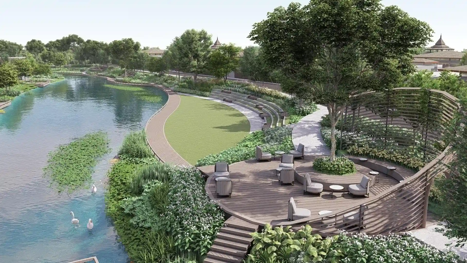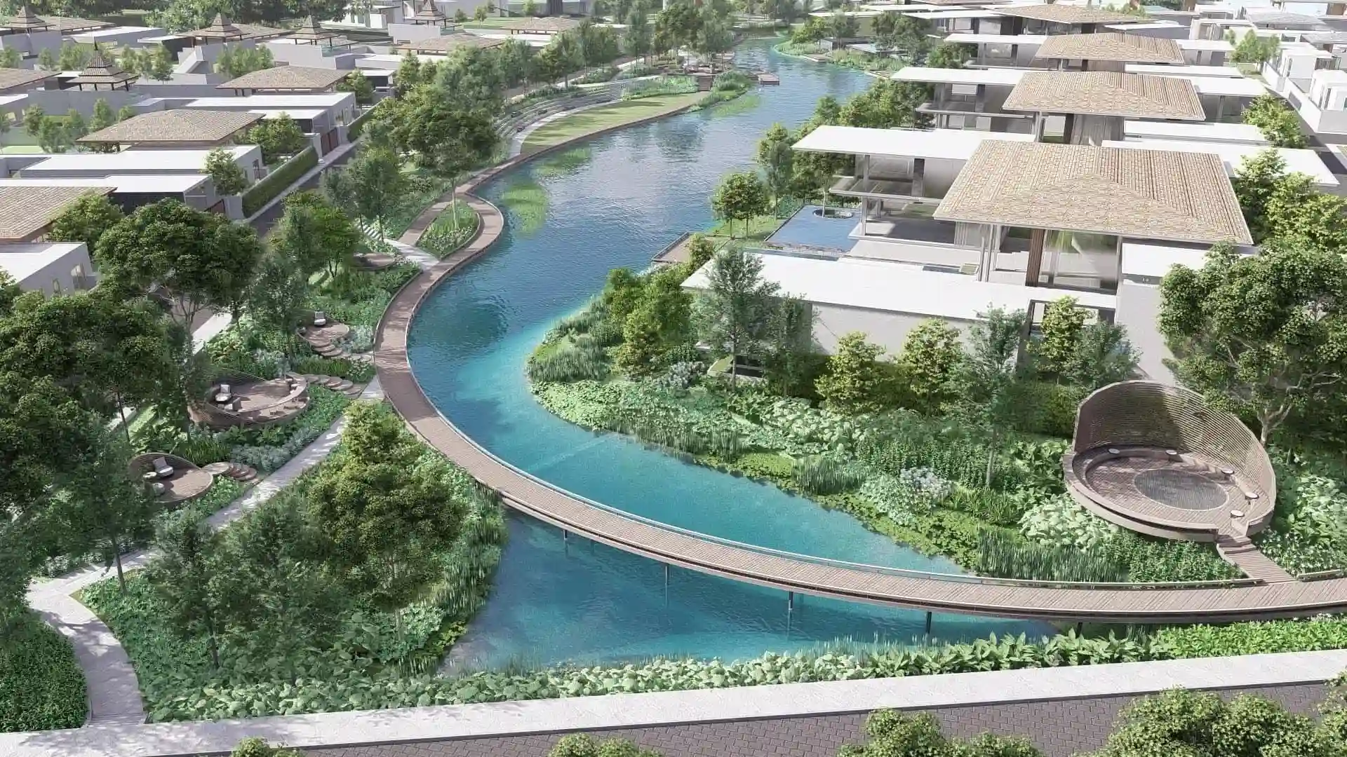 The project includes 56 fully furnished villas in tropical Balinese style with private pools ranging from 37 to 99 m² and spacious terraces