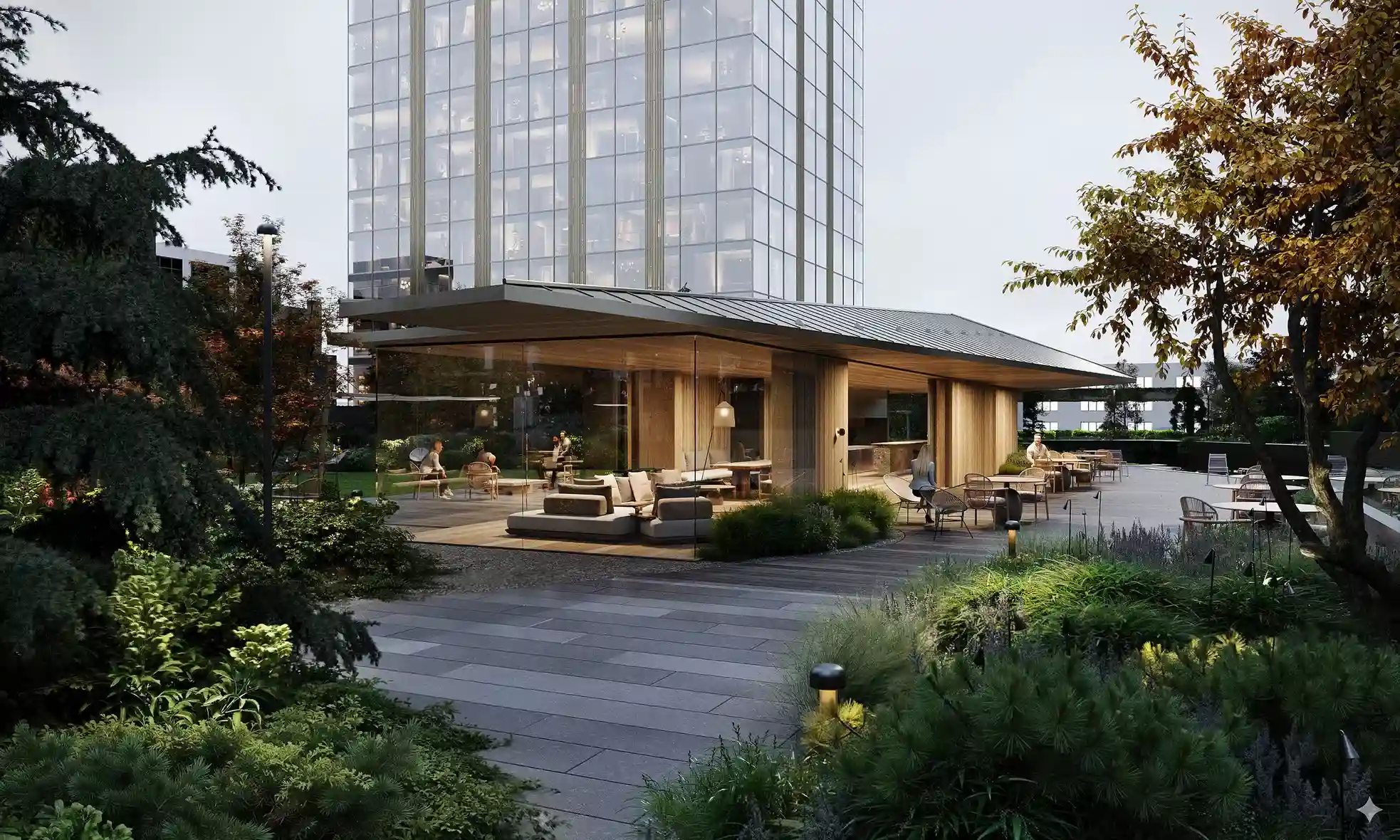 На крышах четырех корпусов расположены приватные общественные террасы, доступные только для резидентов