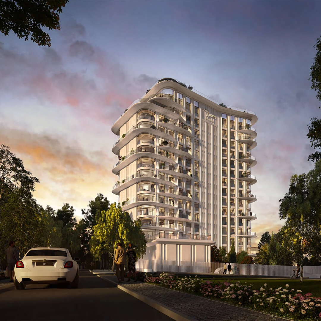 Состоит из четырех корпусов высотой от 1 до 10 этажей и вилл