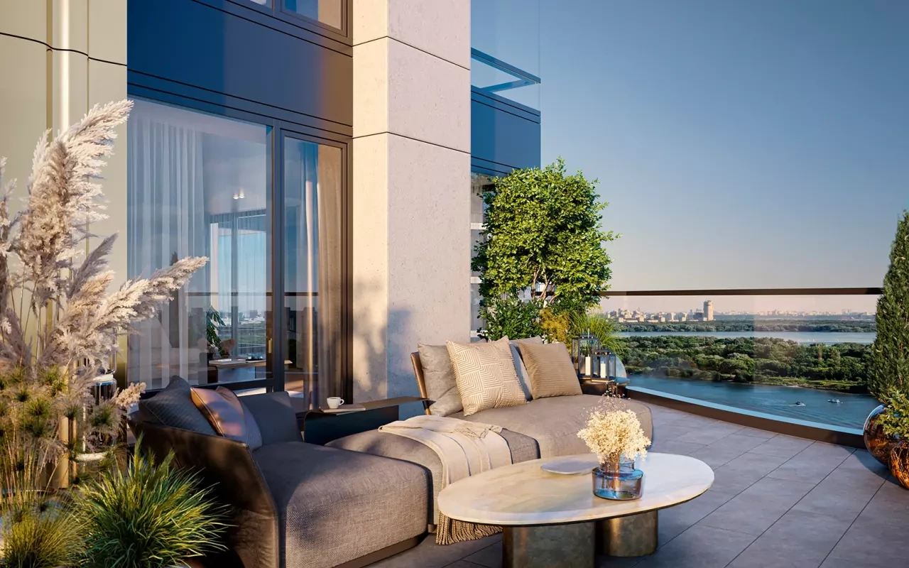Помимо стандартных квартир, представлены лоты с частными террасами, двухуровневые пентхаусы на верхних этажах с видами на водоемы и апартаменты с отдельным входом в патио