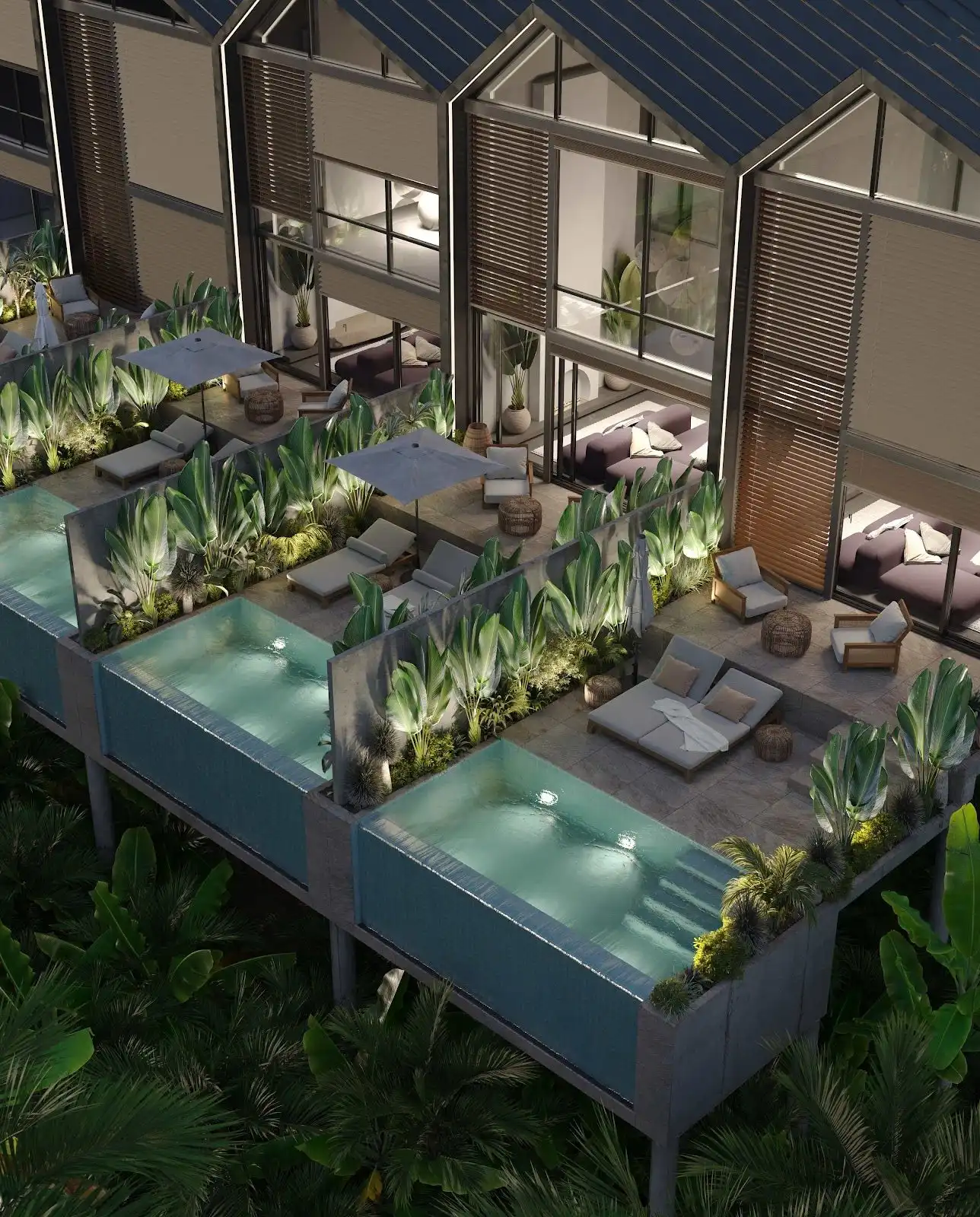 Комплекс из 42 двухуровневой виллы расположен в самом сердце Убуда и предлагает идеальное сочетание роскоши и гармонии с магической атмосферой этого места