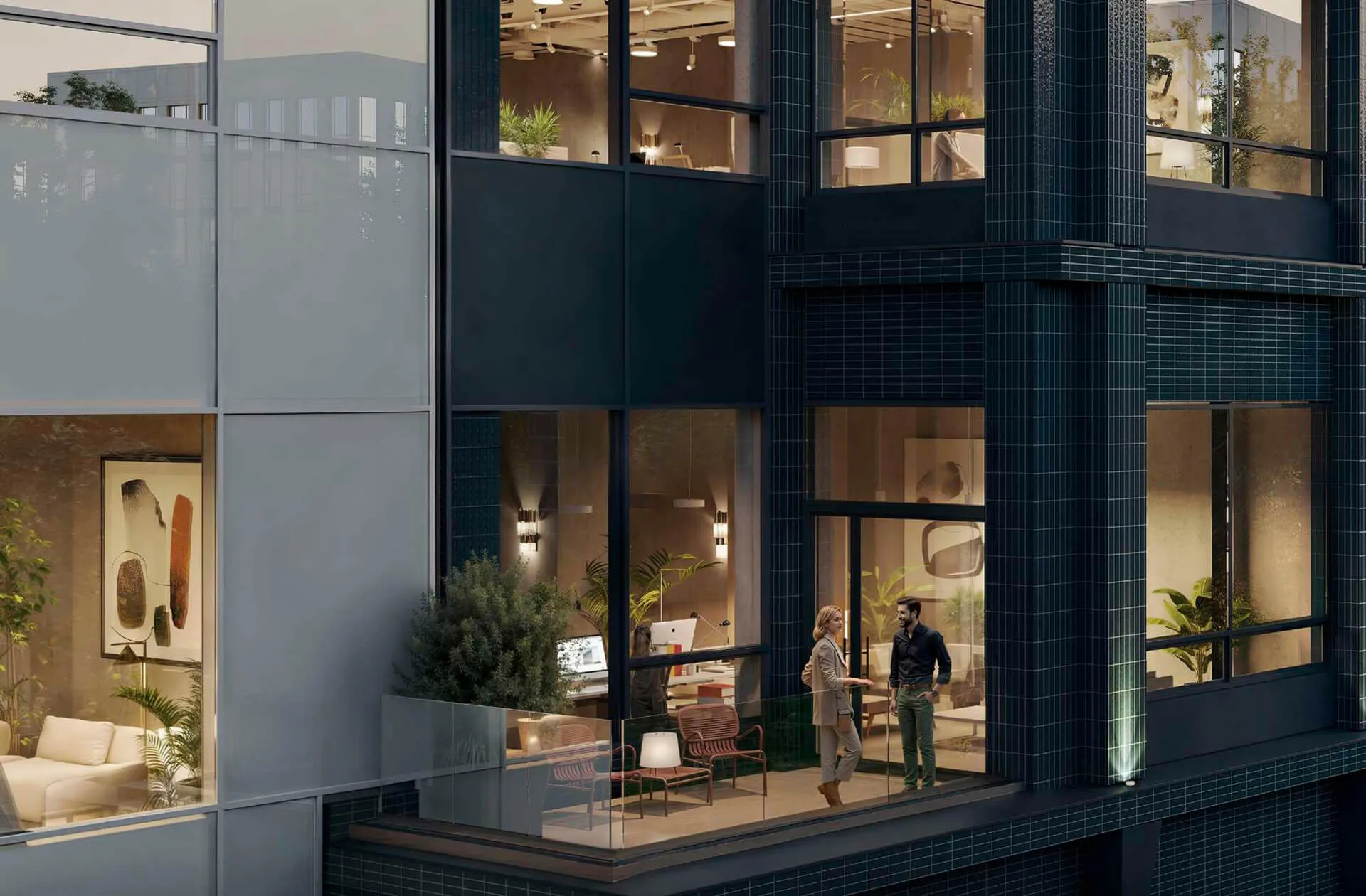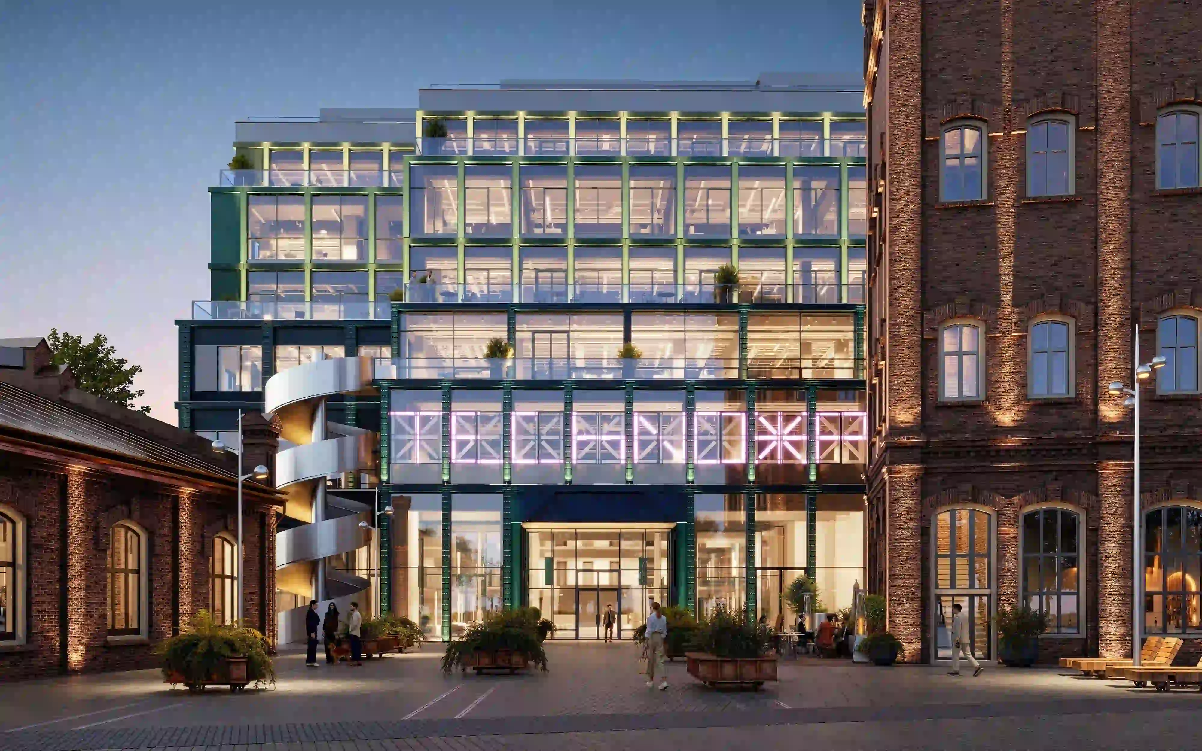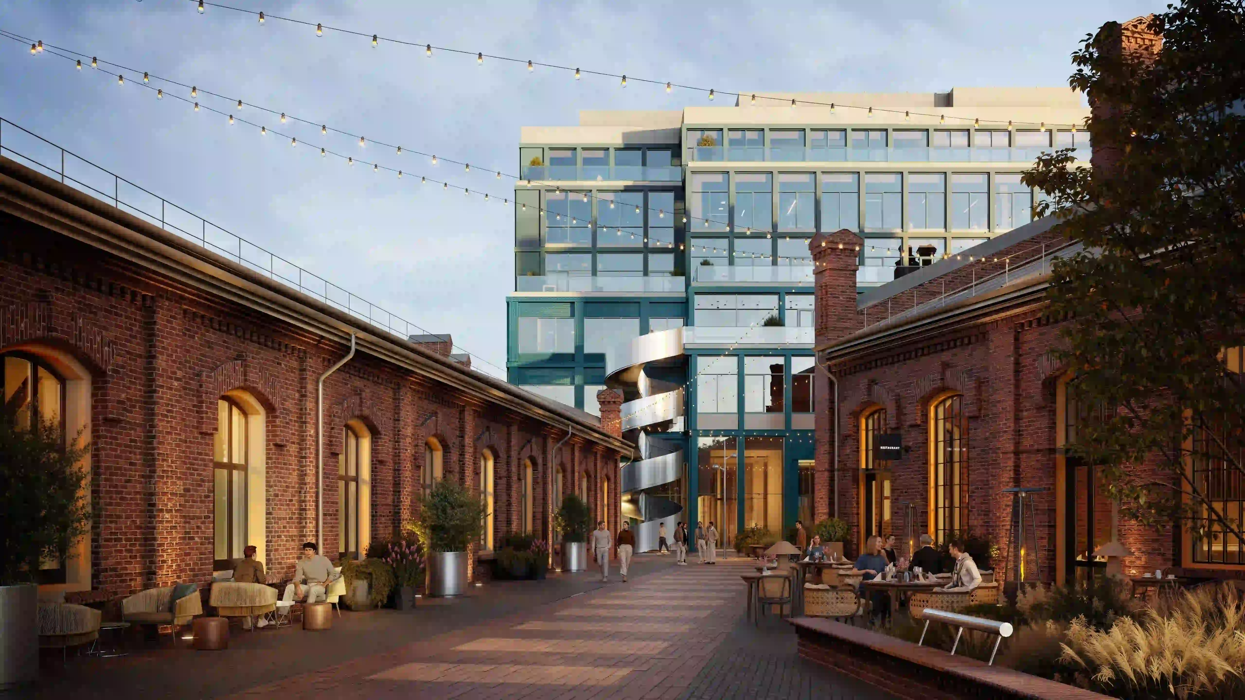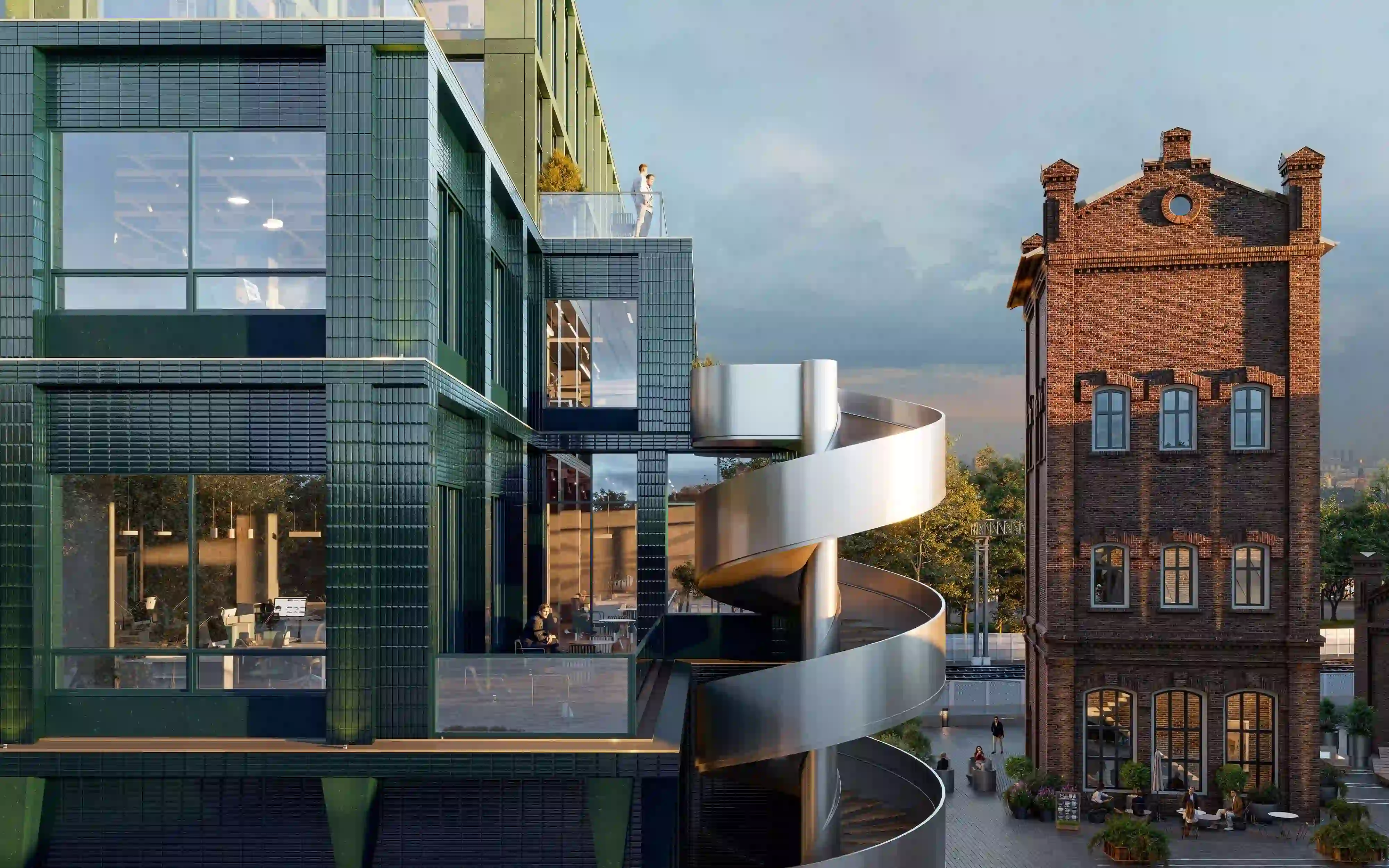 Состоит из 7 этажей и объединяет 3 функциональных блока: традиционные офисы, помещения в индустриальном стиле и ритейл-пространства