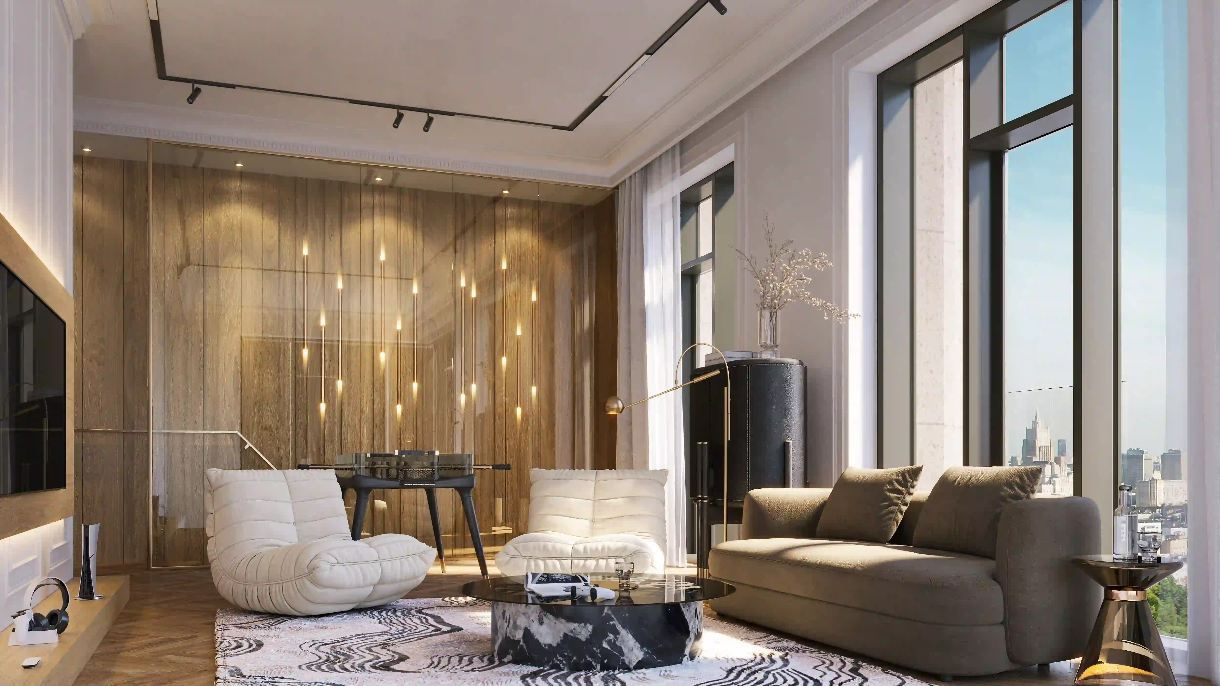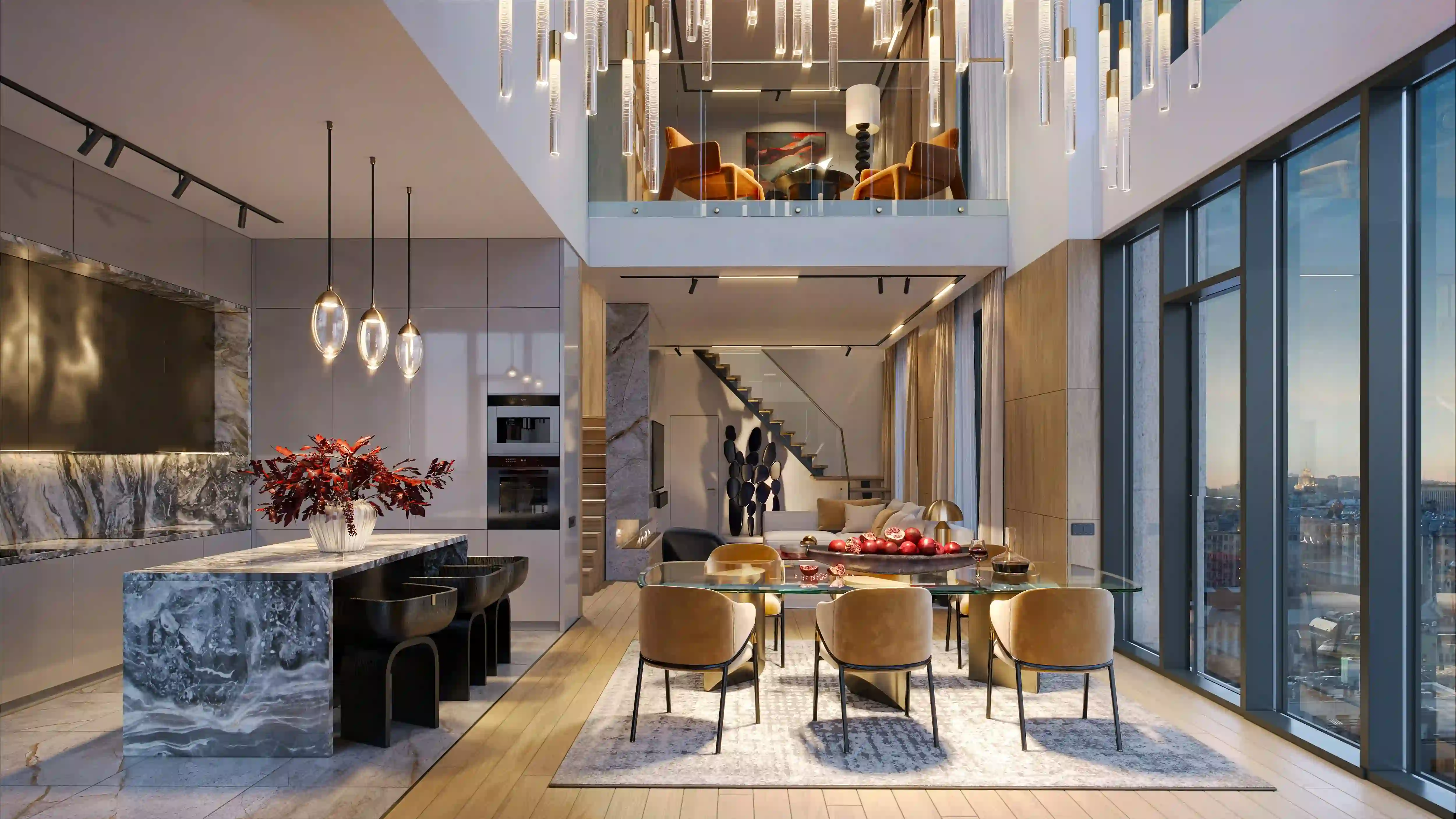Форматы квартир: двухэтажные со вторым светом, High level на предпоследнем этаже с каминами и потолками до 8,25 метра, а также апартаменты с потолками до 7 метров и возможностью организации антресольного этажа