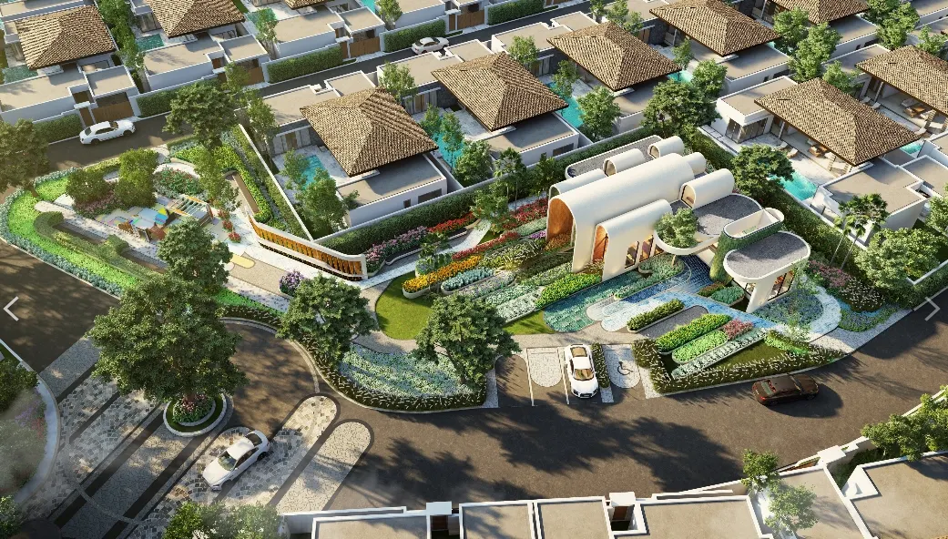 Состоит из 33 вилл с клубным домом и садом на территории комплекса