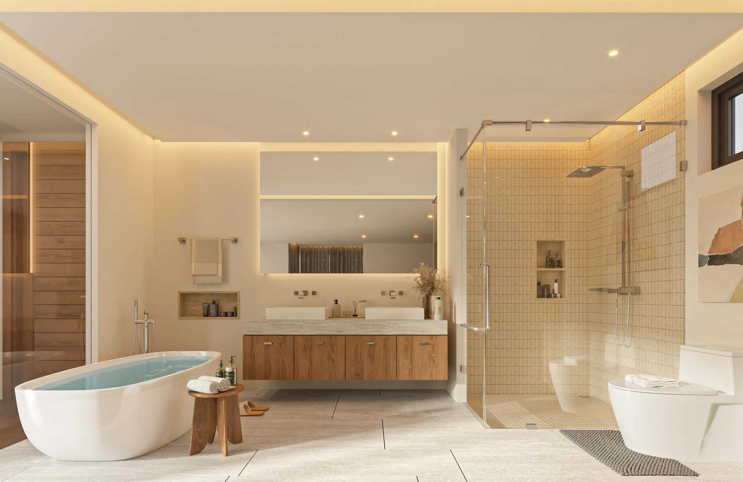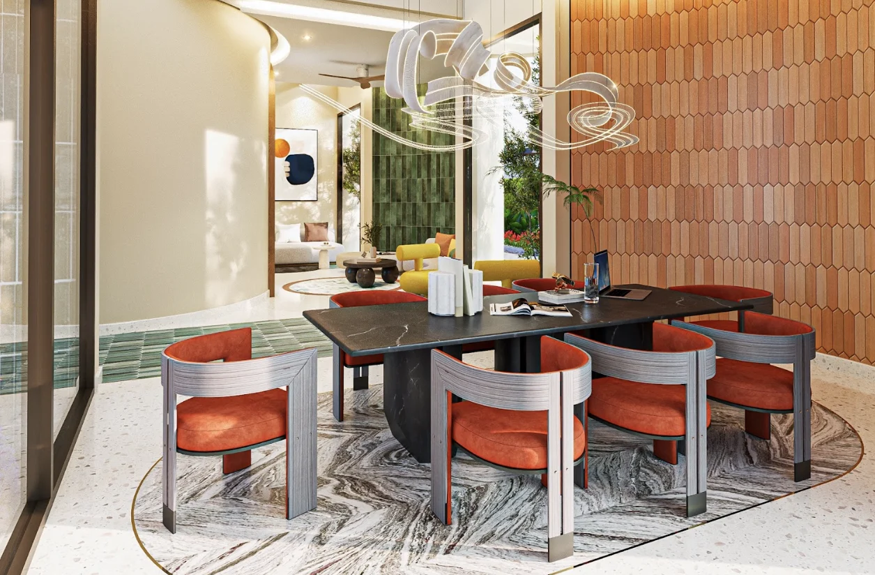 Каждая вилла имеет открытую планировку, гостиные соединены с кухнями и обеденными зонами