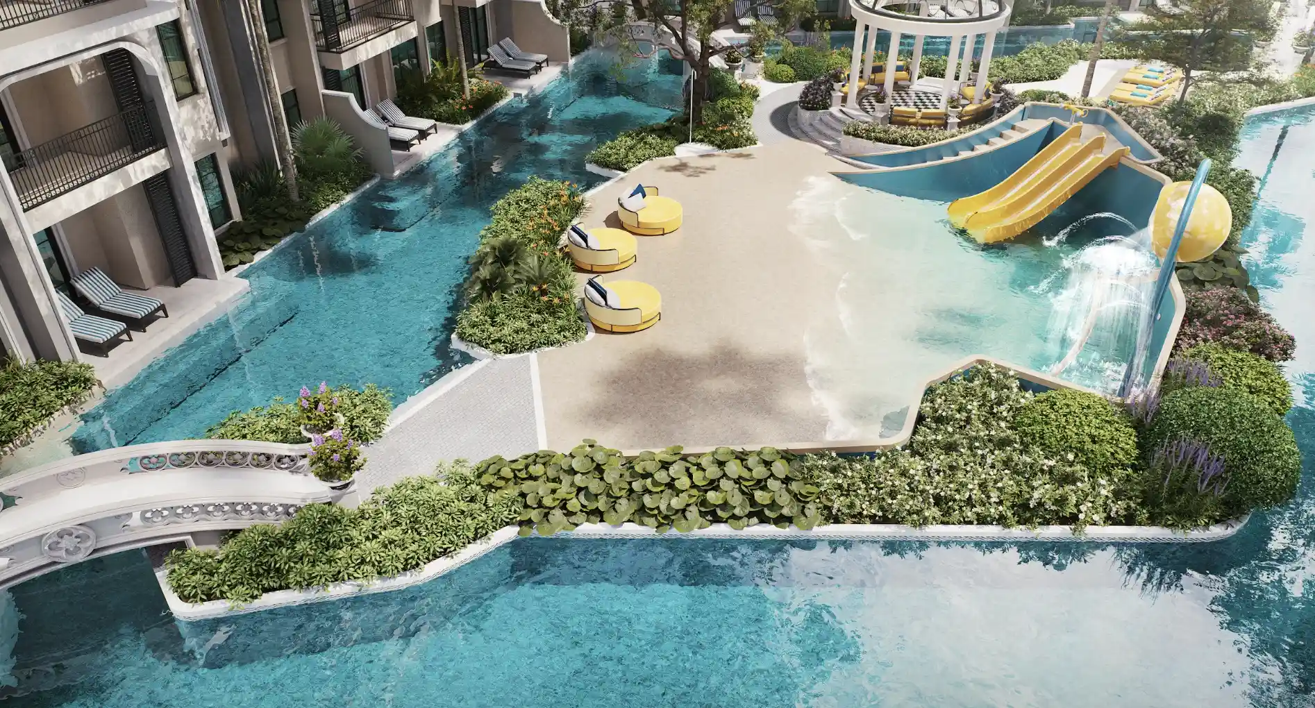 Включает семь семиэтажных зданий, в которых расположено 760 апартаментов включая пентхаусы