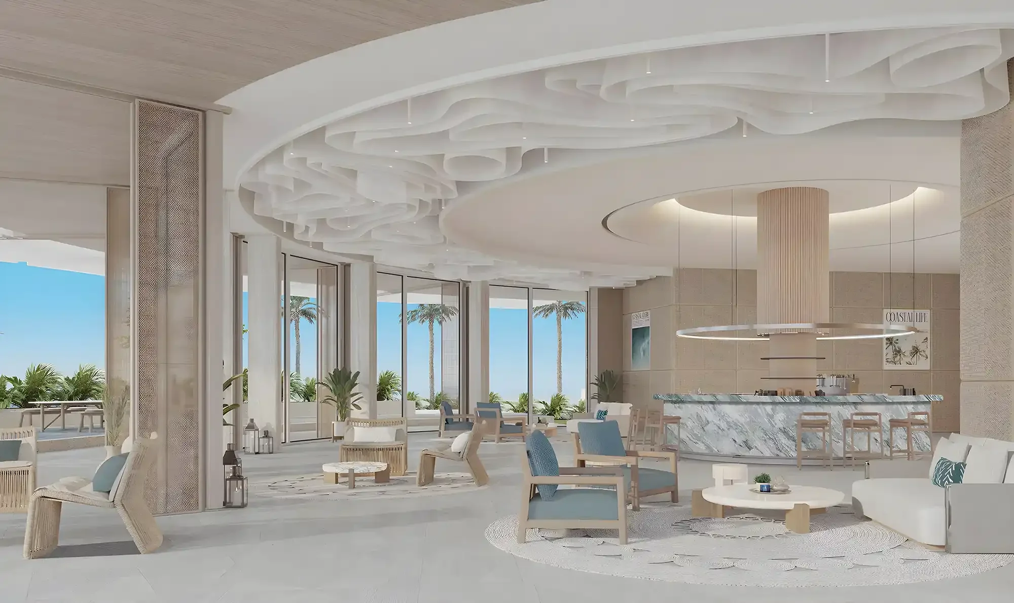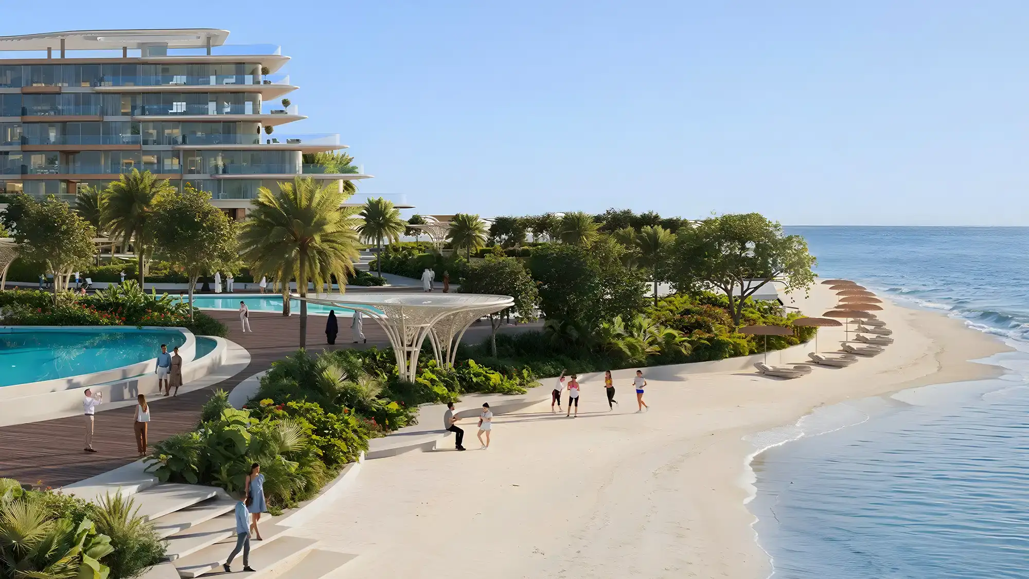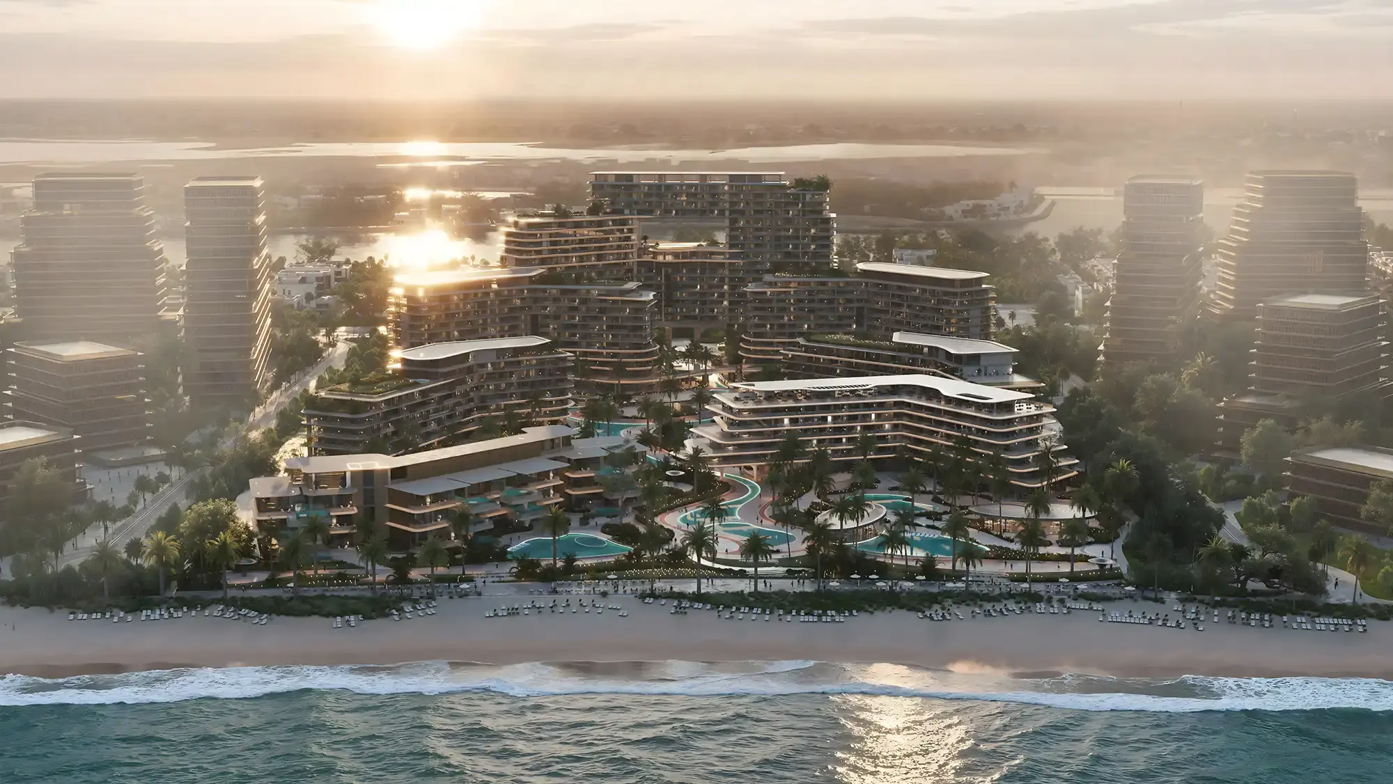 Локация отличается наличием частного пляжа и естественной циркуляцией воды, обеспечивающей повышенные экологические характеристики по сравнению с другими искусственными островами.
