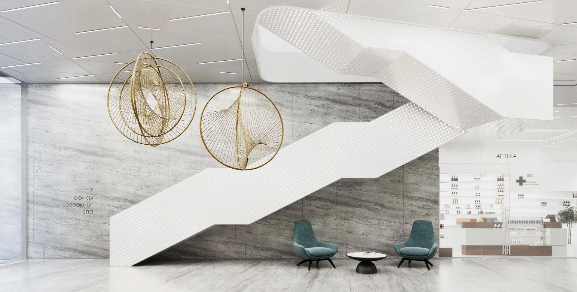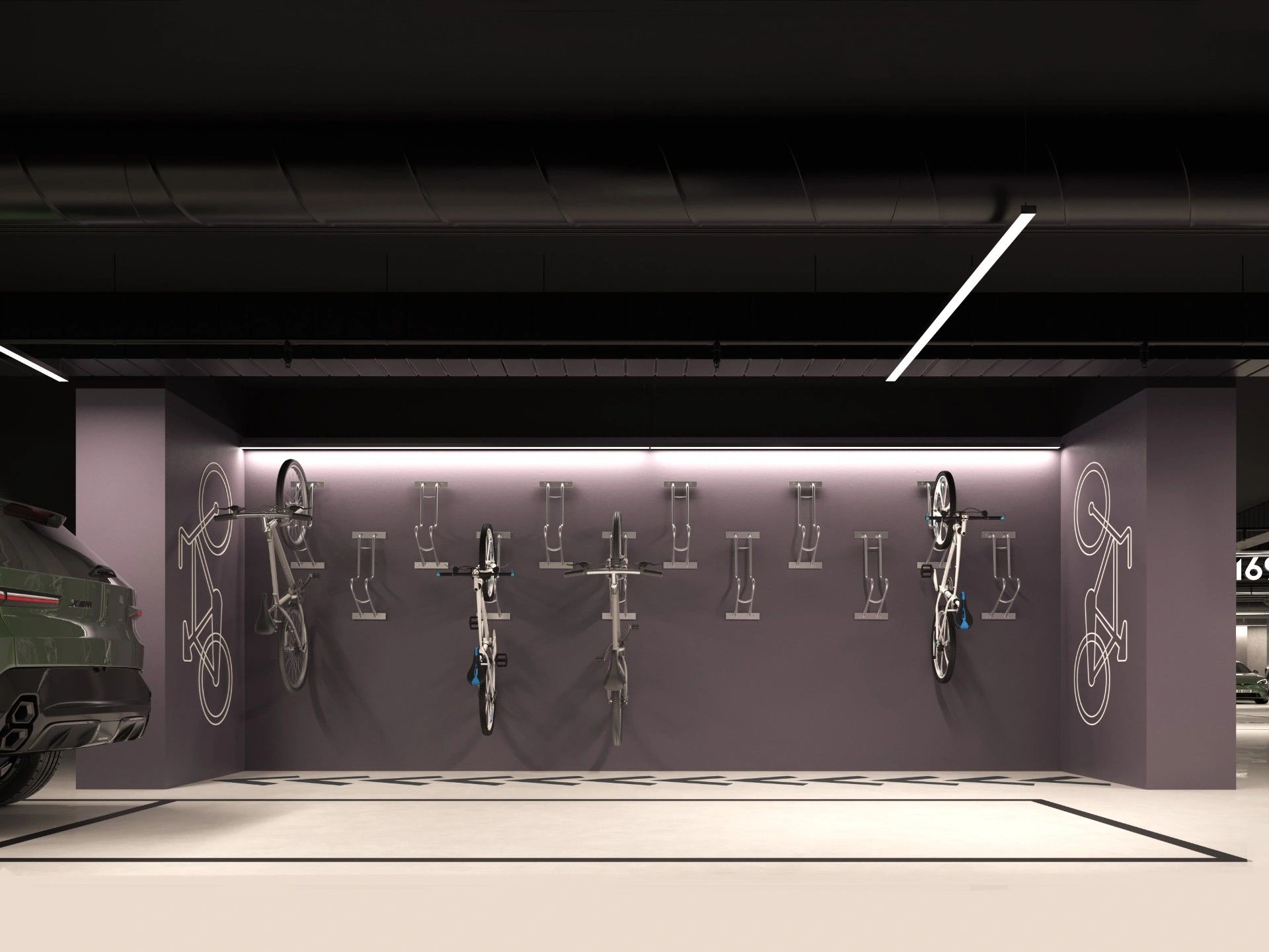 На верхних уровнях расположены одно- и двухуровневые пентхаусы с террасами, каминами и потолками до 8 метров