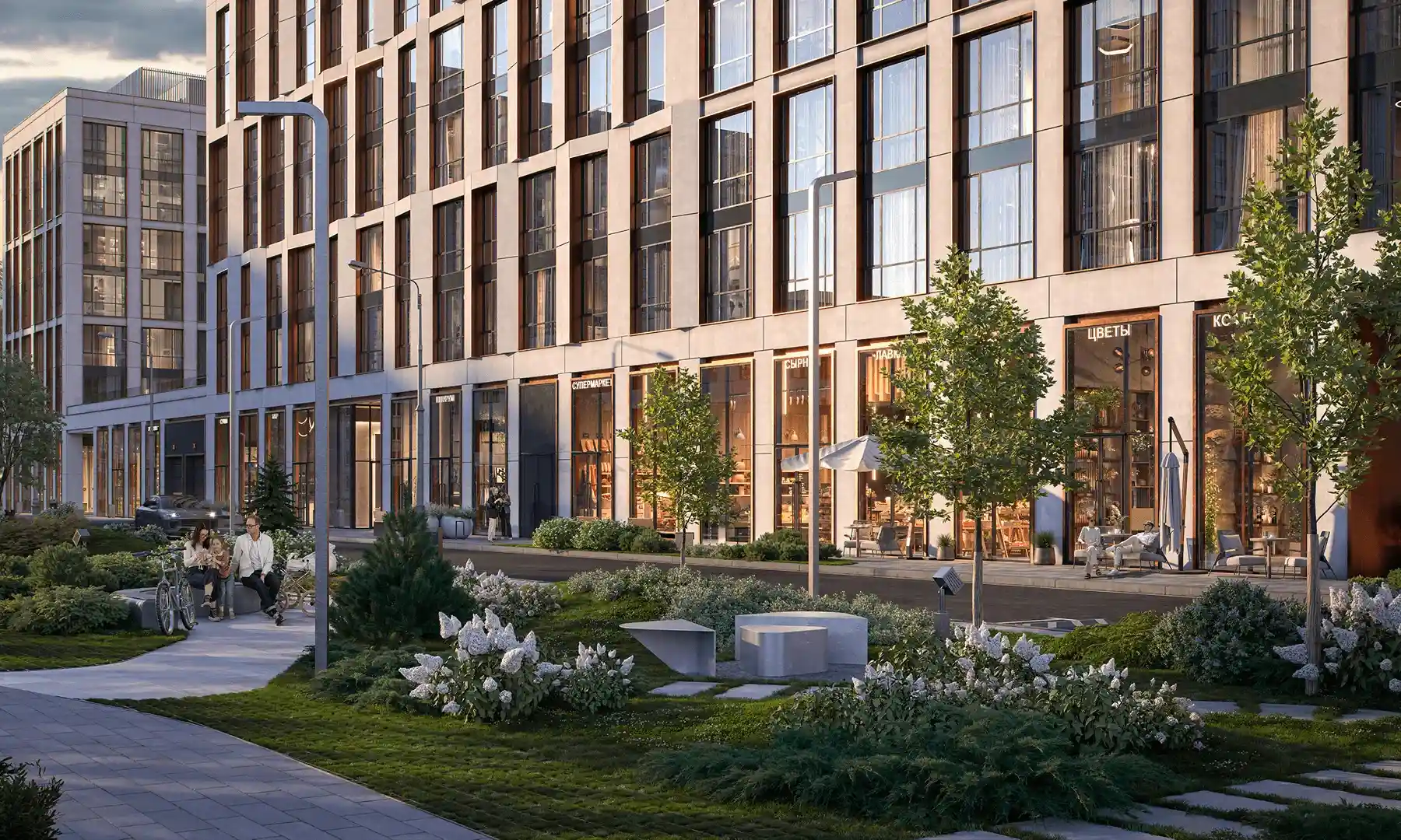 Инфраструктура квартала спроектирована для обеспечения всех базовых потребностей резидентов. На первых этажах разместятся супермаркеты, рестораны, кофейни, барбершоп и спа-салон.