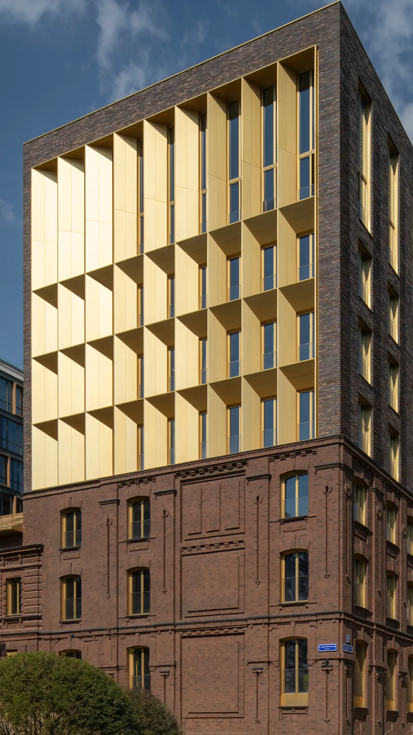 Представляет собой два объединенных здания высотой в 6 и 7 этажей