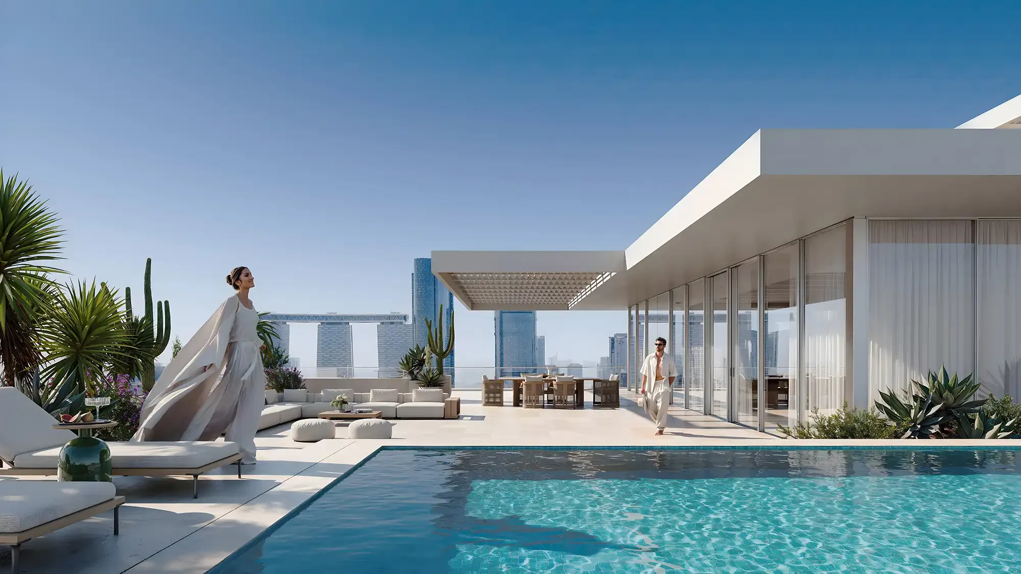 Включает более 400 резиденций и 12 вилл, предлагая апартаменты, трехспальные дуплексы, Ocean Villas, Sky Villas и единственный пентхаус площадью 1 867 м²