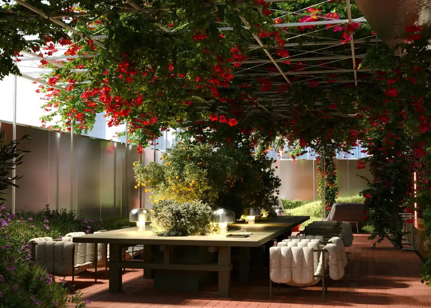 Премиальная инфраструктура комплекса включает террасу с садом, два бассейна и ресторан здорового питания.