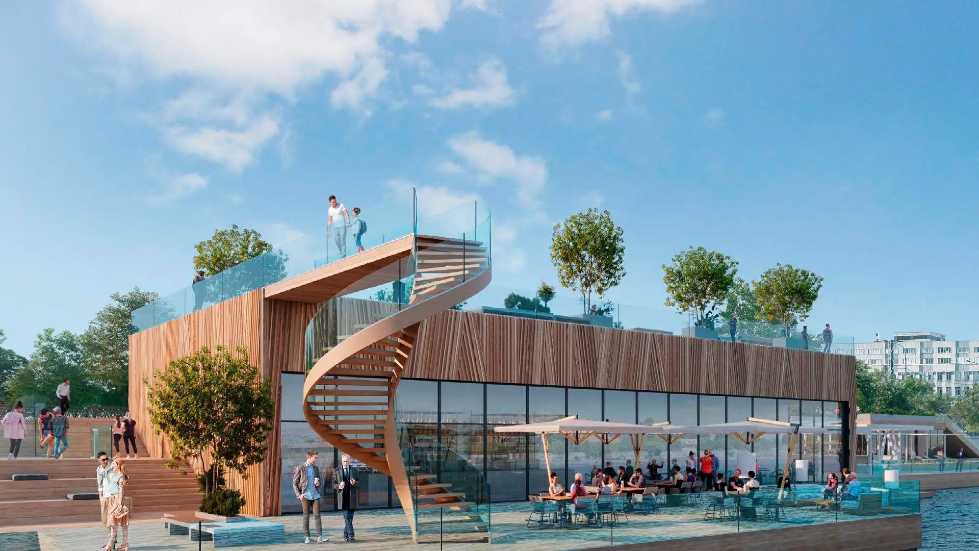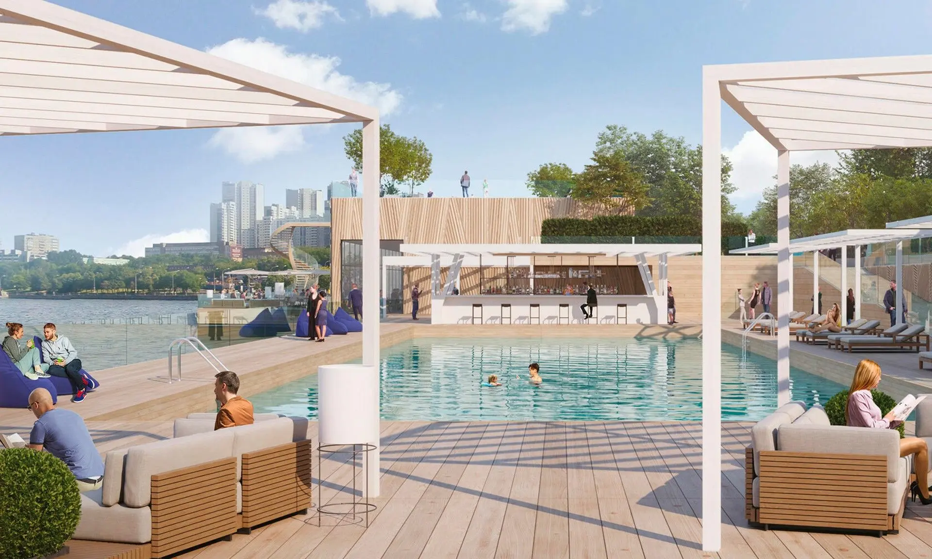 Пляжный клуб — одно из ярких преимуществ для жителей. Отдохнуть у воды можно будет, не покидая квартал.