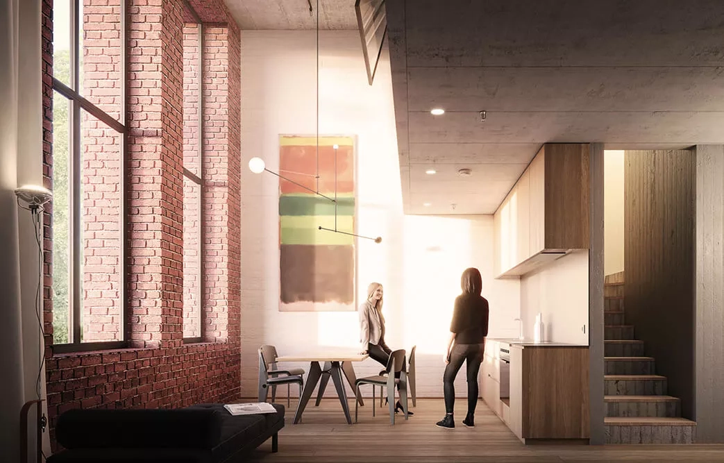 Представлены двухуровневые квартиры, апартаменты с террасами и верандами, лоты под стеклянными куполами с винтовыми лестницами и пятиэтажная жилая башня с шестиметровыми потолками