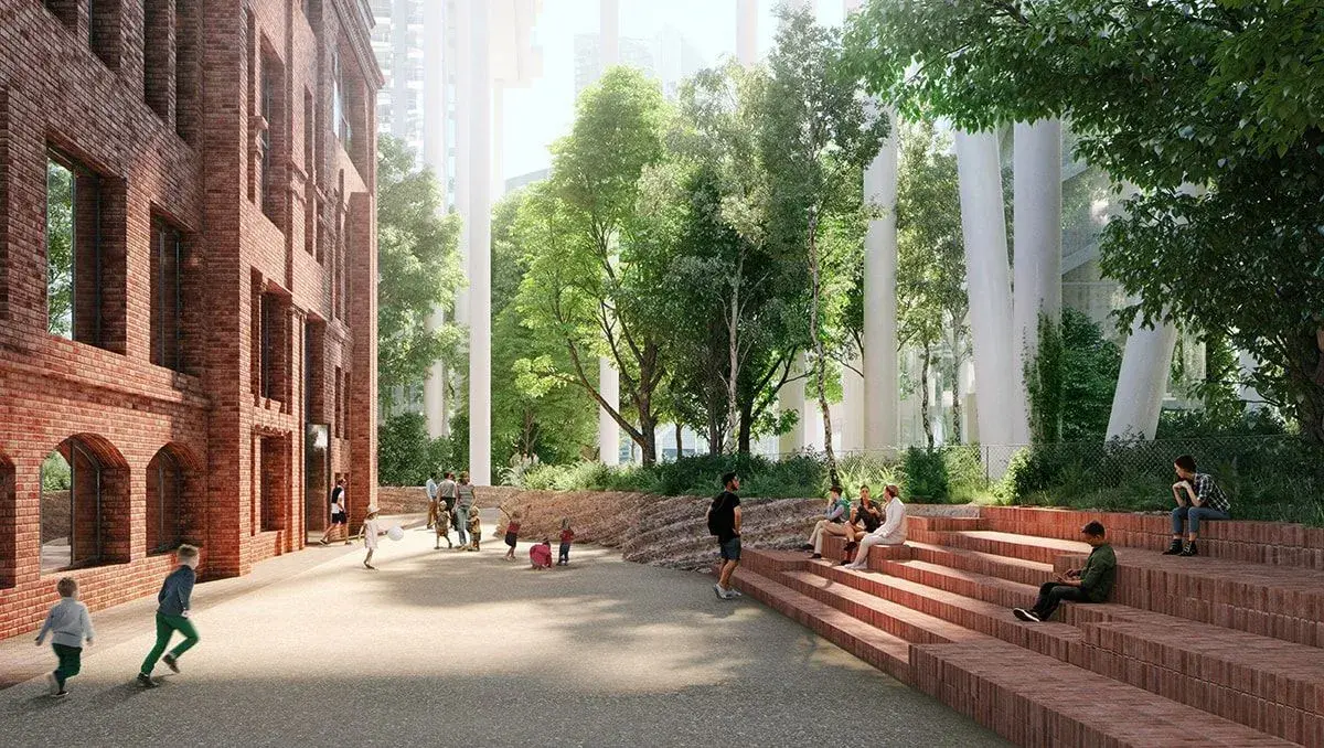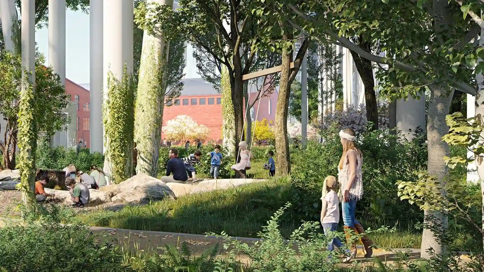 В рамках реконструкции будет проведен редевелопмент территории нового жилого комплекса: благоустройство набережной, создание пешеходного бульвара, формирование парка площадью 4 га, а также строительство спортивных и игровых площадок.