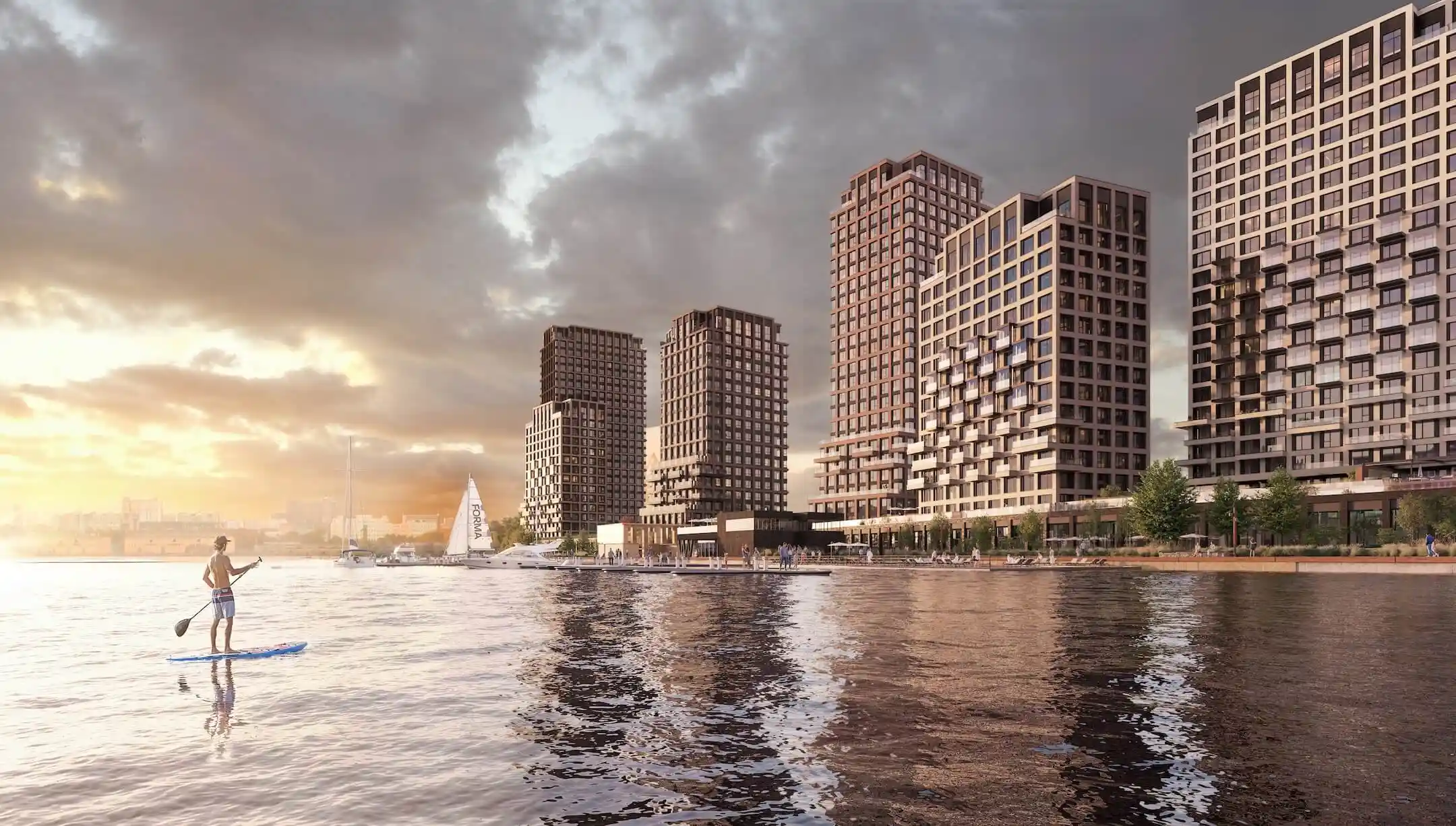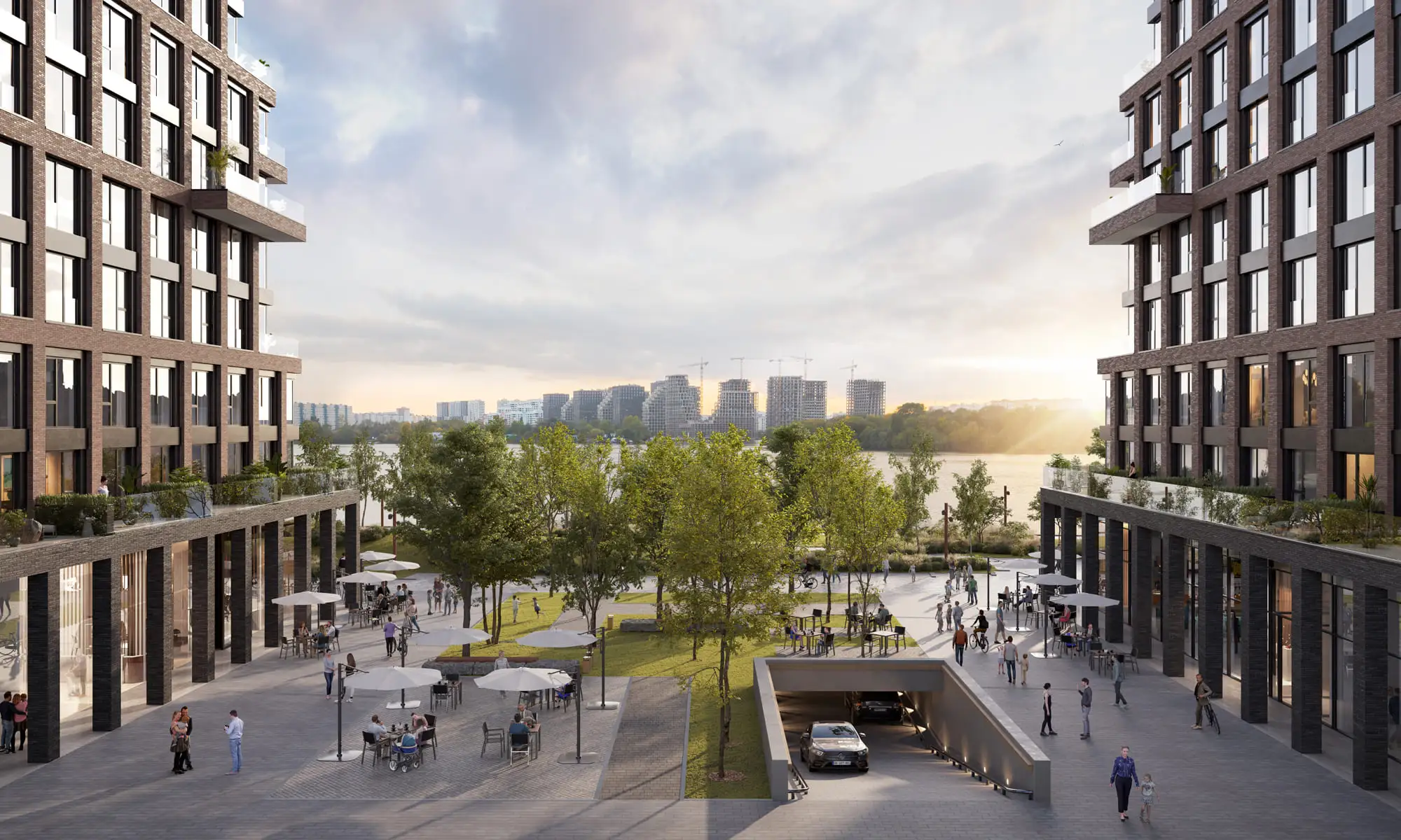 Жилой комплекс занимает территорию площадью 400 гектаров, где будут построены два квартала с собственной инфраструктурой и благоустроенной набережной с выходом к реке.