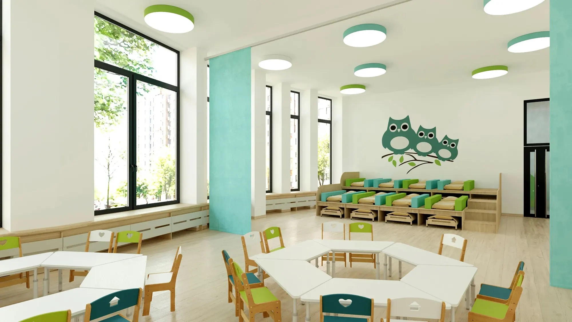 Во дворах можно насладиться завтраком на террасе, игрой с детьми или спортом на свежем воздухе. В комплексе cвой комьюнити-центр — многофункциональное пространство для работы, отдыха, общения и развития. Одна из важнейших частей центра — частная библиотека с лаунж-зоной.