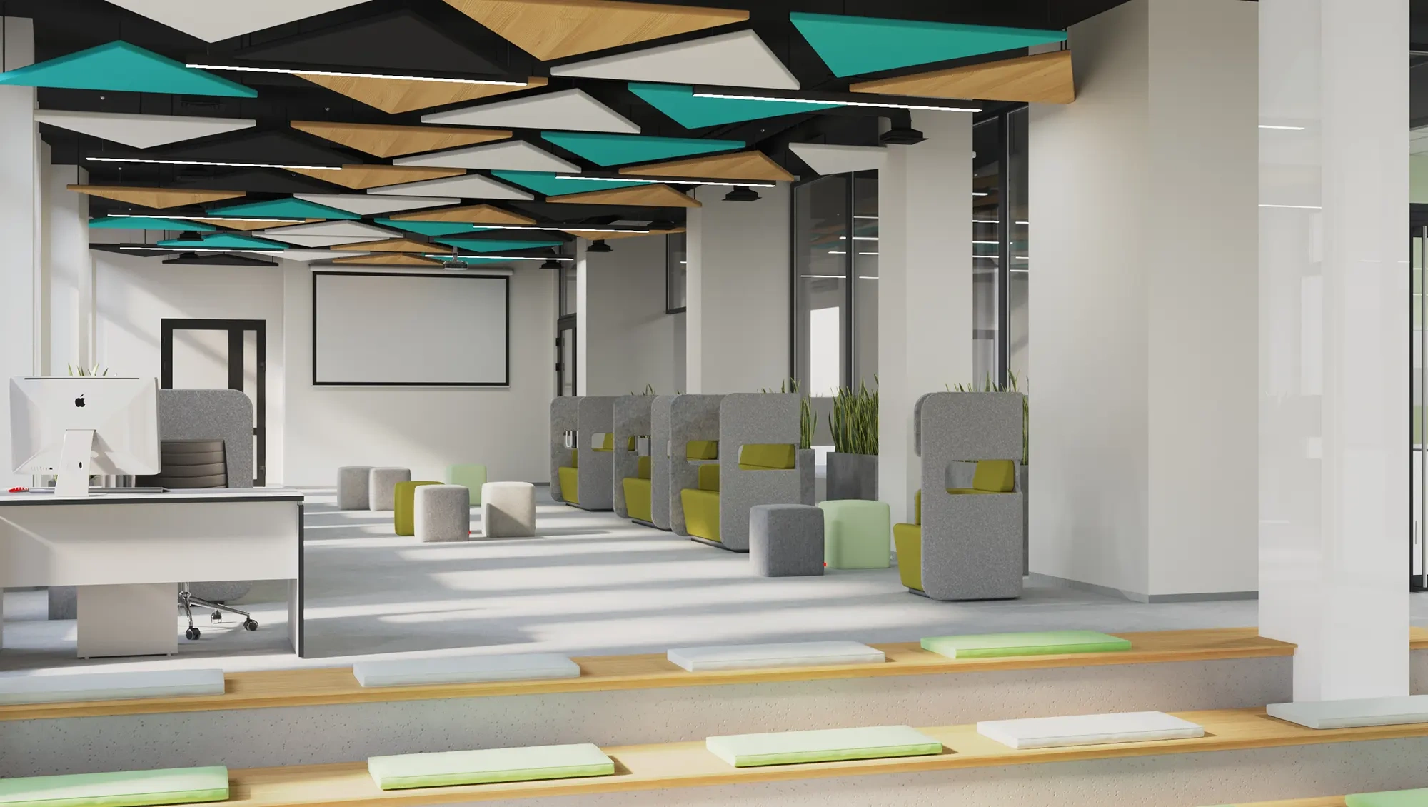 Идея knowledge-centric среды поддерживается здесь и книжным магазином с лекторием, а также зонами для самостоятельной учебы и занятий с преподавателями.