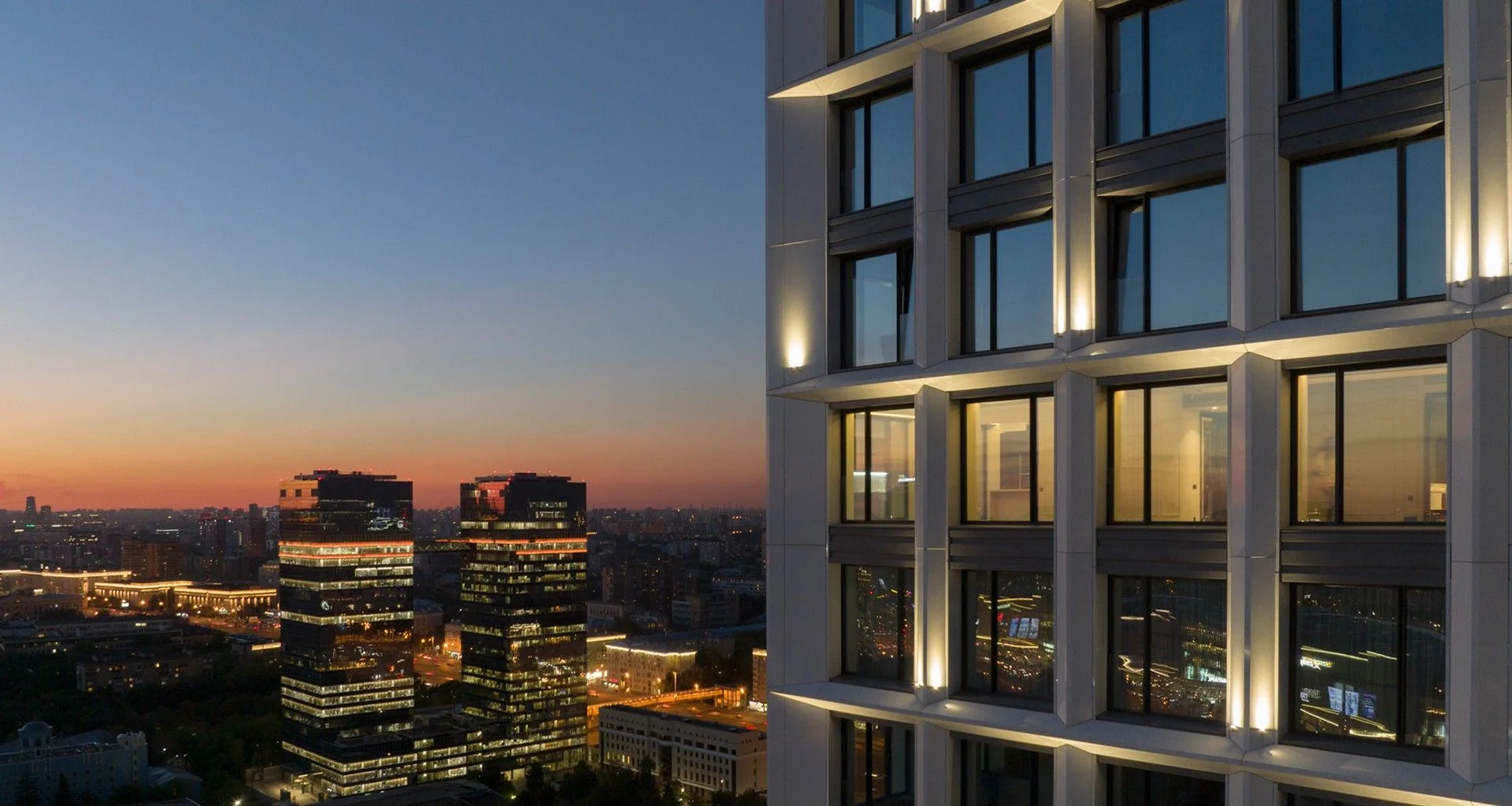 Виды на Петровский путевой дворец, Москва-Сити, Триумф-Палас и Останкинскую башню